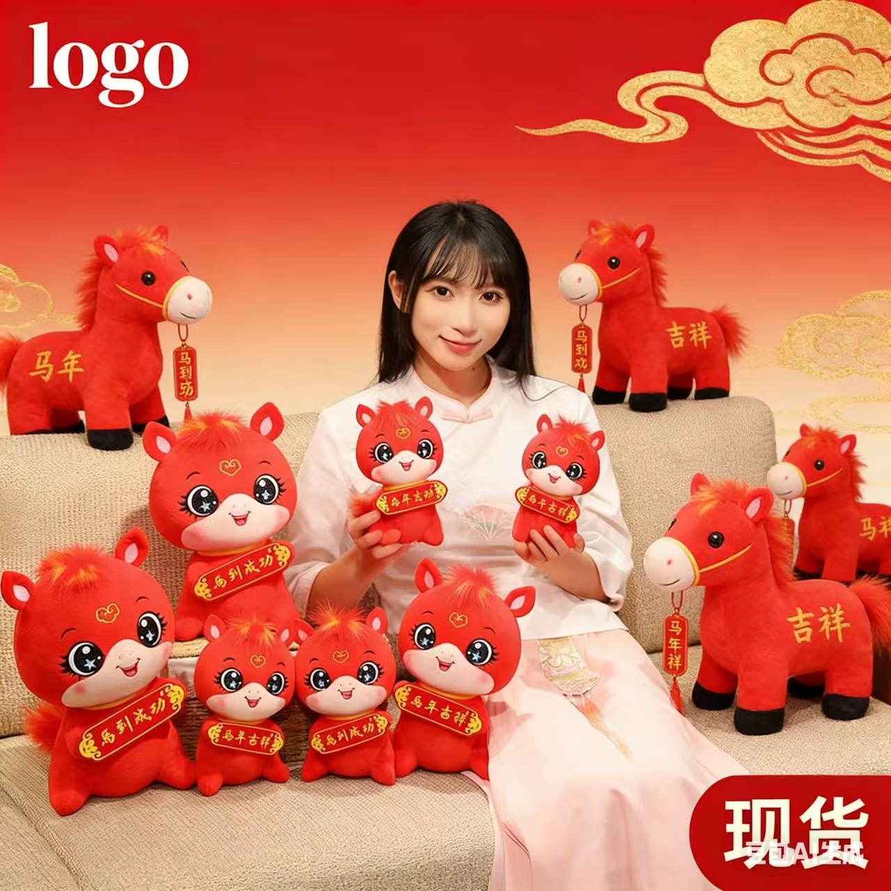 马年吉祥物毛绒玩具公仔生肖马玩偶现货可加公司logo吉祥物玩偶