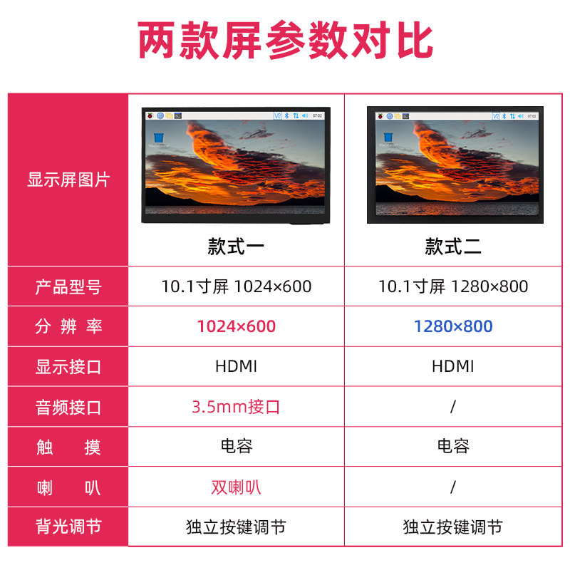 树莓派5代10.1寸触摸显示屏pi4B IPS电容显示器HDMI高清电脑屏幕