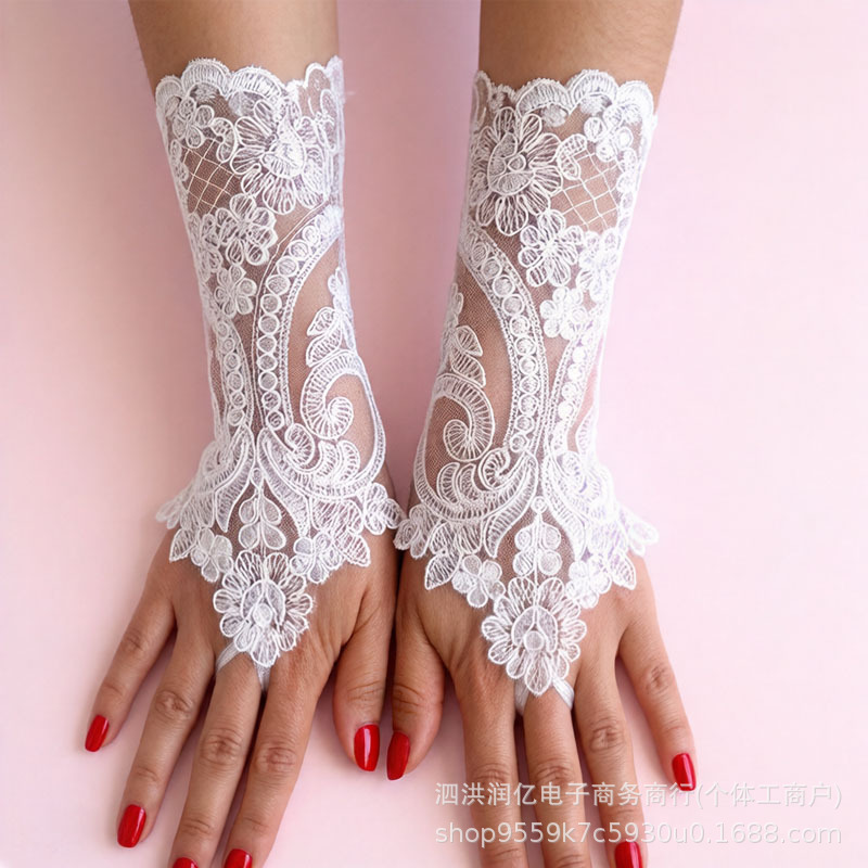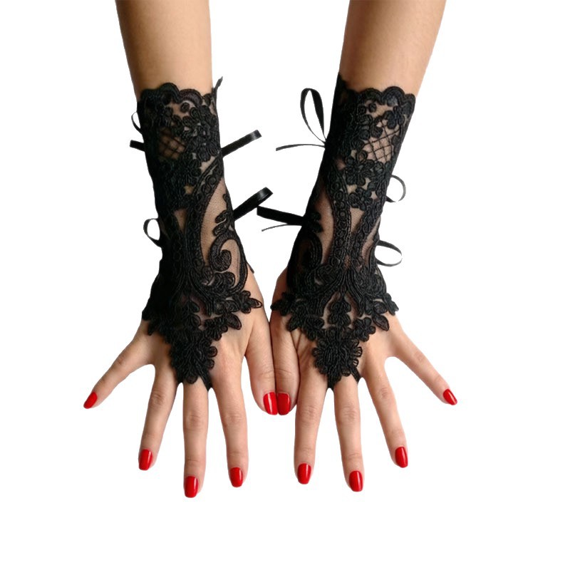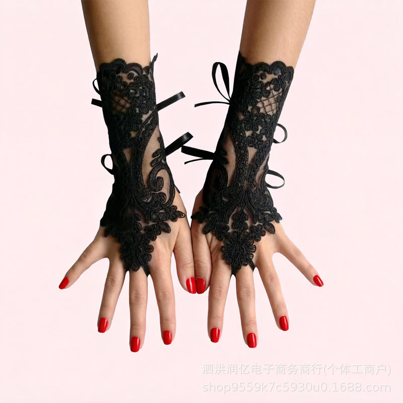 欧美新娘时尚短款露指手套黑色镂空无指网纱手套婚纱礼服配件跨境