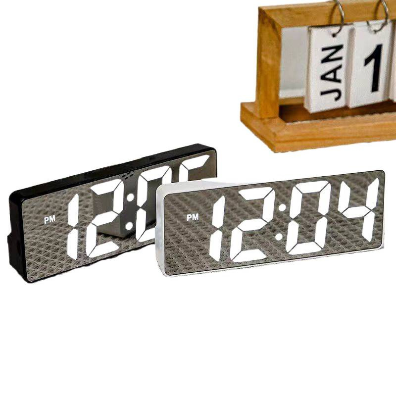 夜光镜面时钟桌面钟表时间表摆台式摆件数字显示器电子闹钟塑料