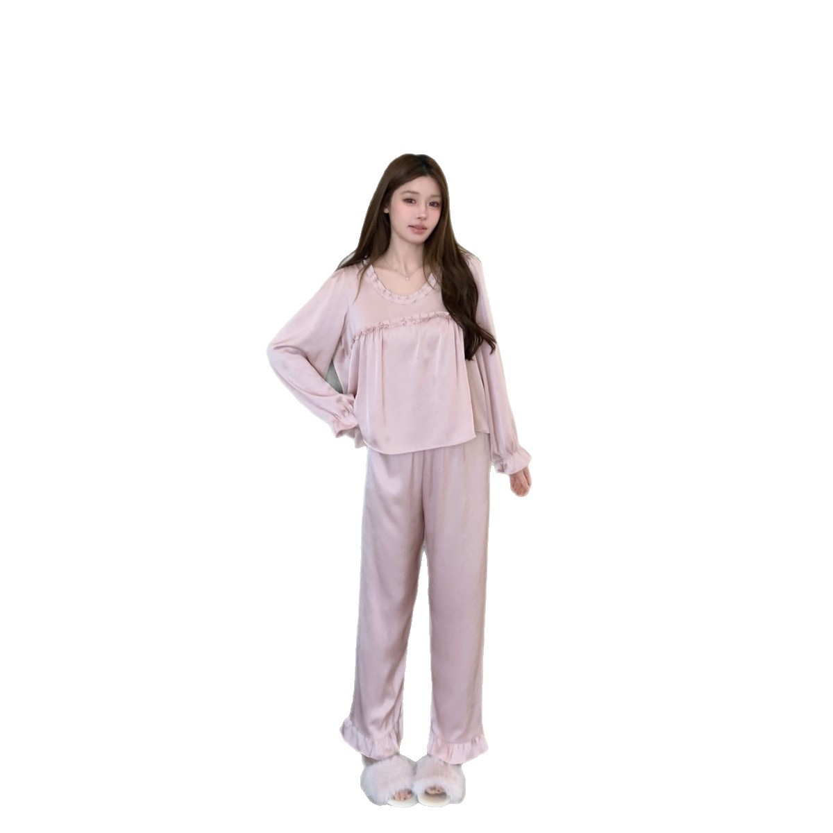 2026睡衣女新款缎面冰丝简约高级感长袖长裤套装套头家居服可外穿