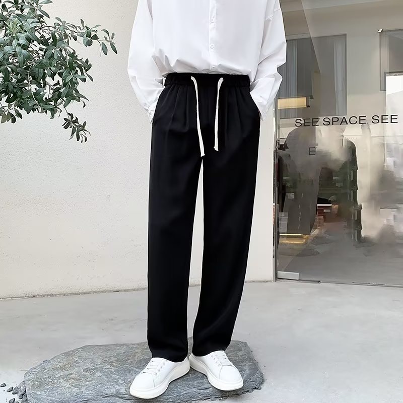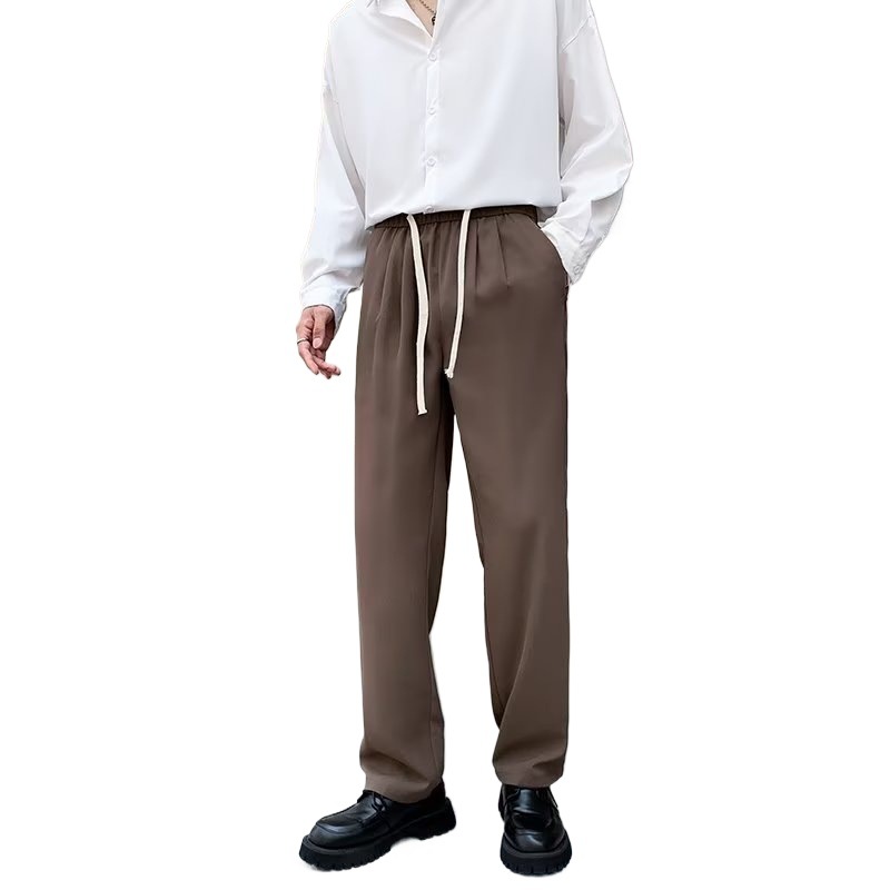 直筒褶皱松紧中腰垂感西裤男装痞帅春夏薄款速干休闲阔腿裤子