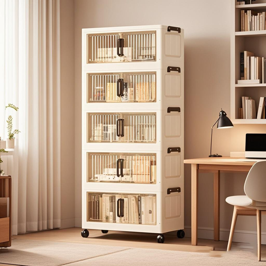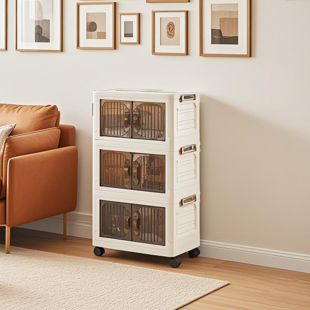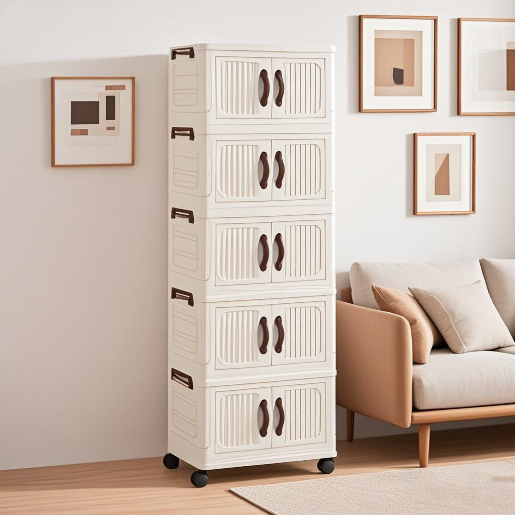 外贸双开门收纳柜免安装磁吸折叠柜客厅储物箱卧室防尘多层置物箱