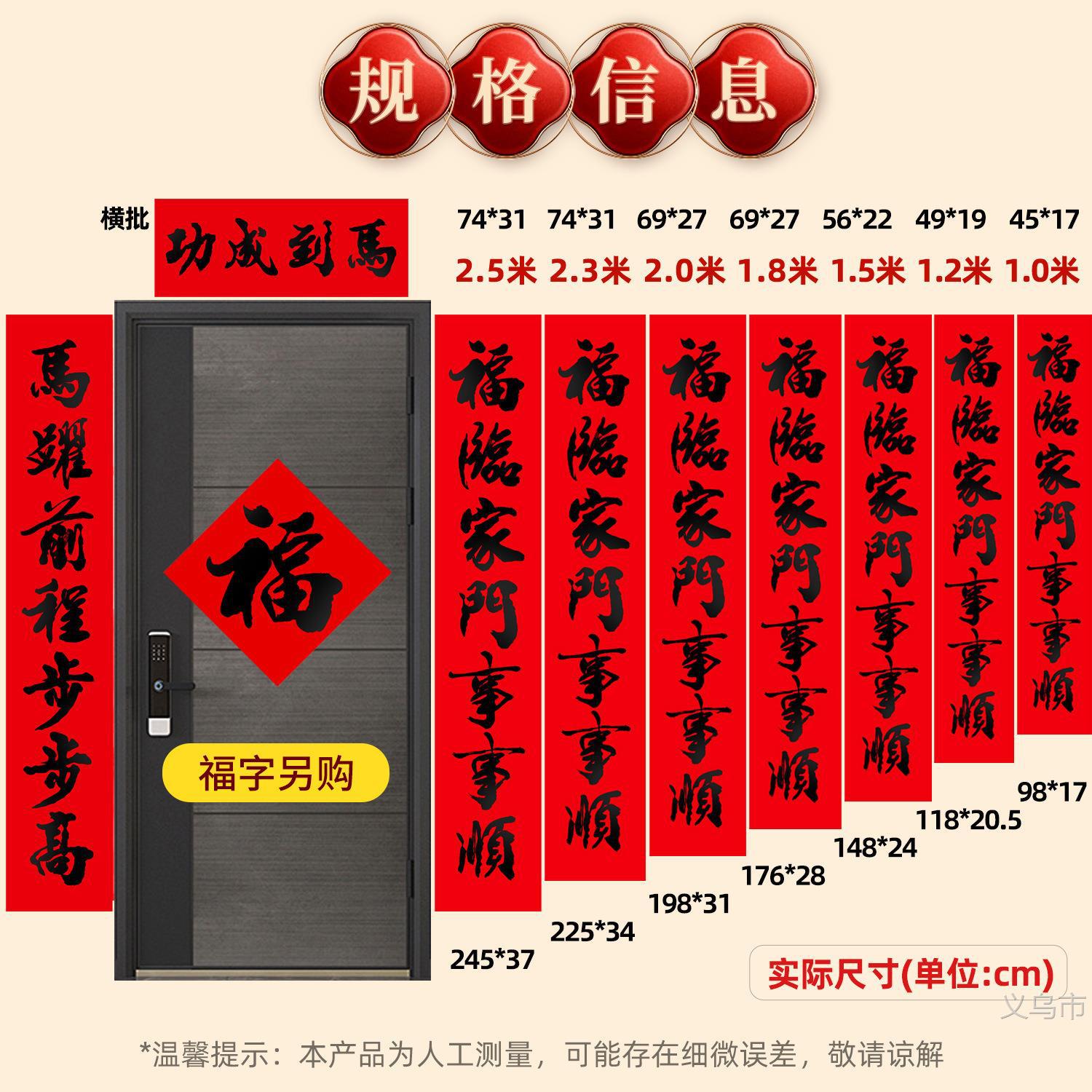 | 尺寸 | 【铜版纸对联】2.0米福临家门事事顺,马跃前程步步高 马到成功 | 尺寸 | 【铜版纸对联】2.3米迎春接福庆平安,恭喜发财贺团圆 |