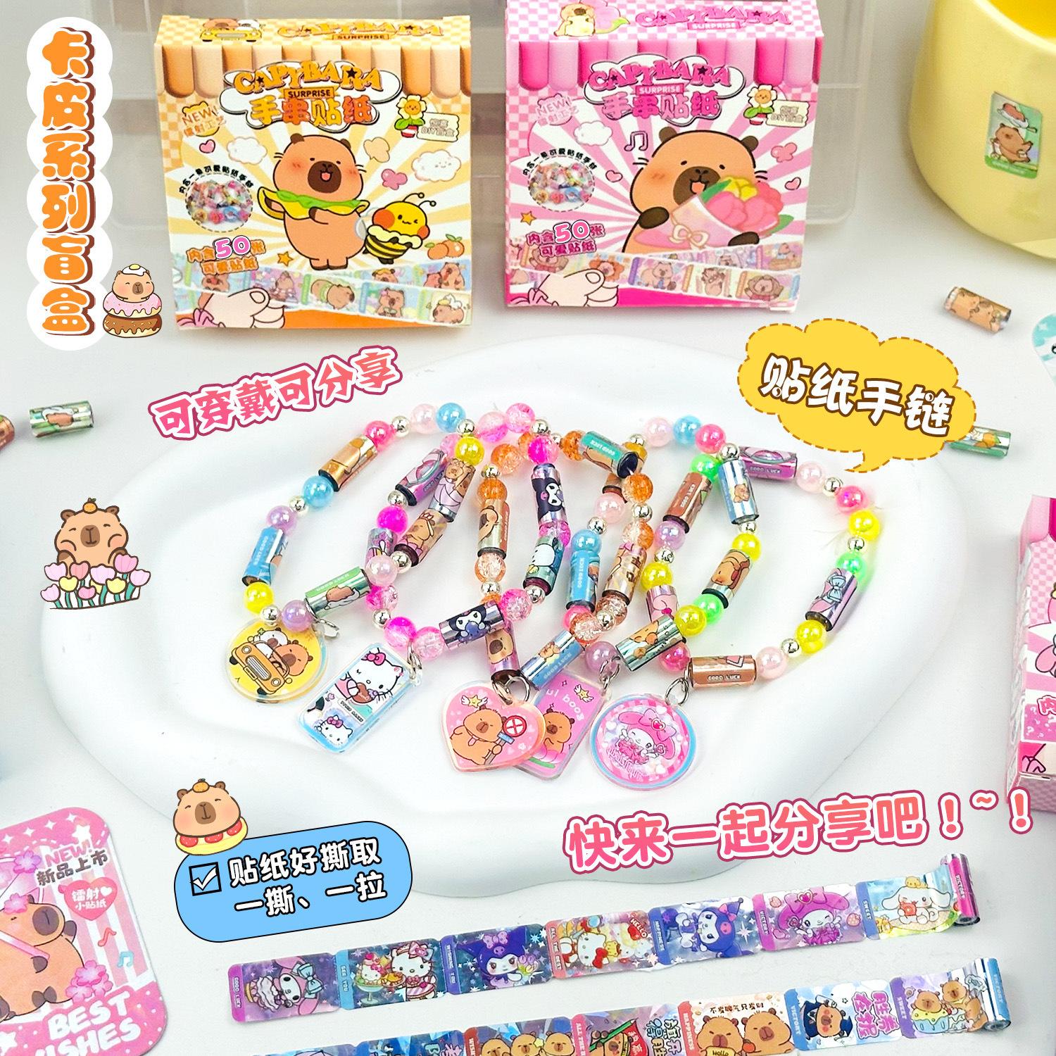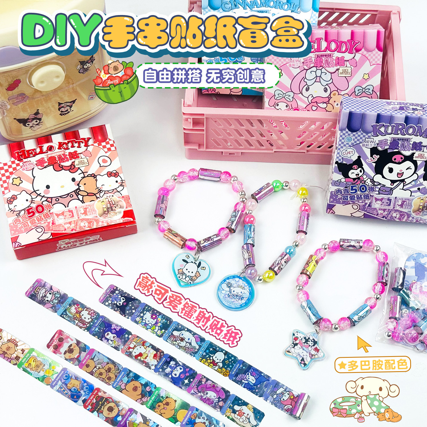三丽丽卡皮系列卡通diy贴纸手串手链儿童女孩2025新款手链盲盒