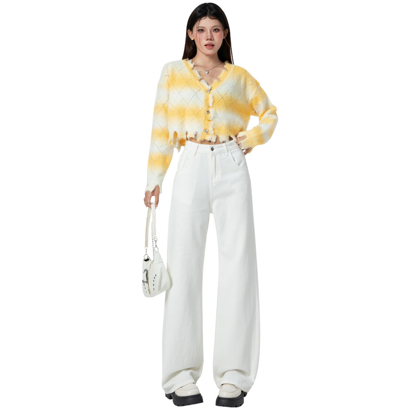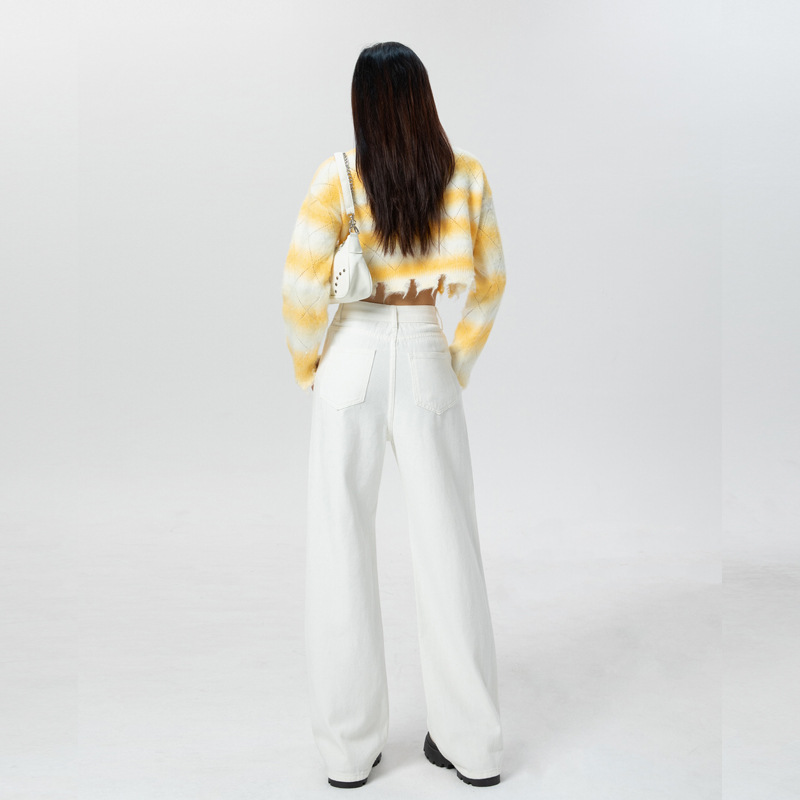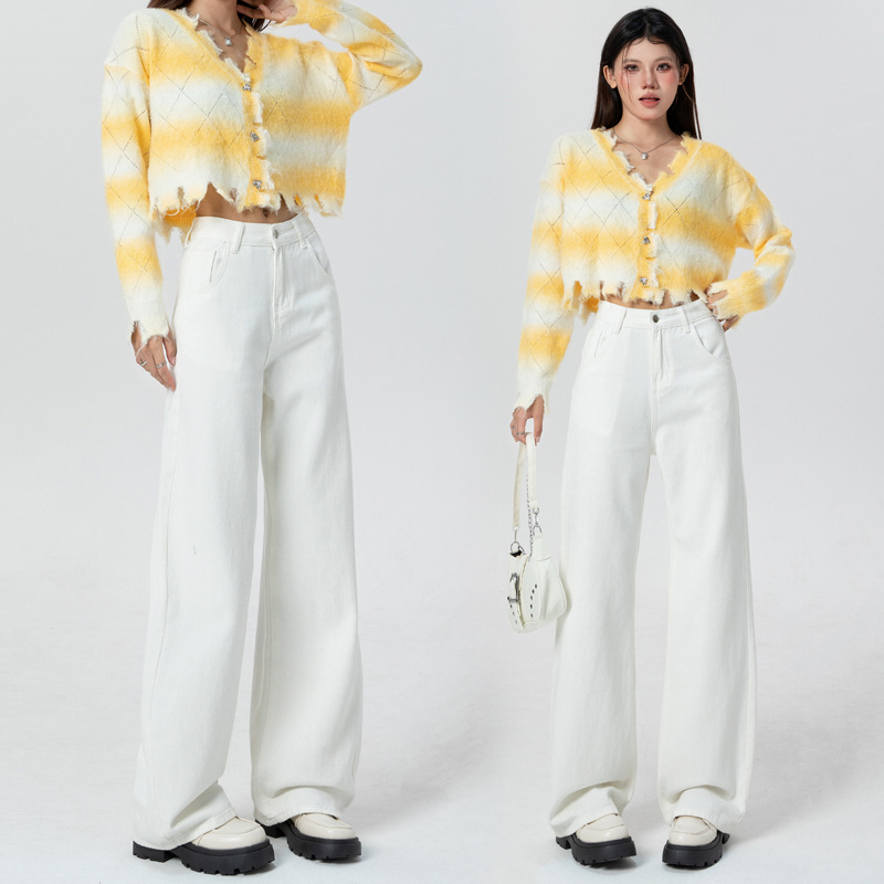 2025年秋冬季新款白色牛仔长裤女韩版高腰宽松垂感百搭阔腿拖地裤