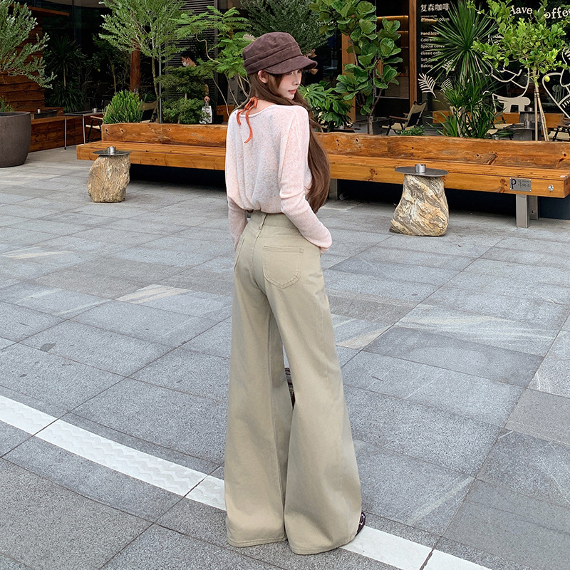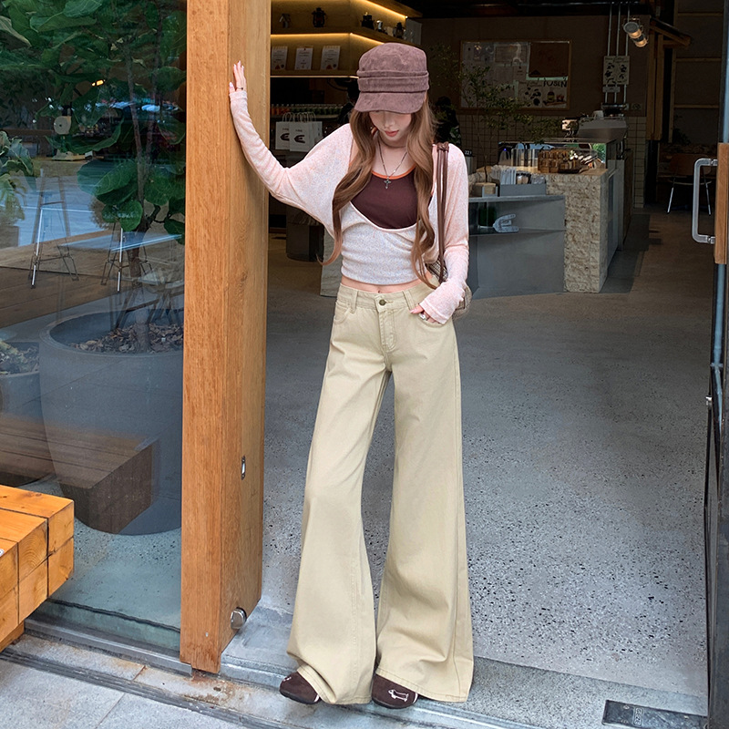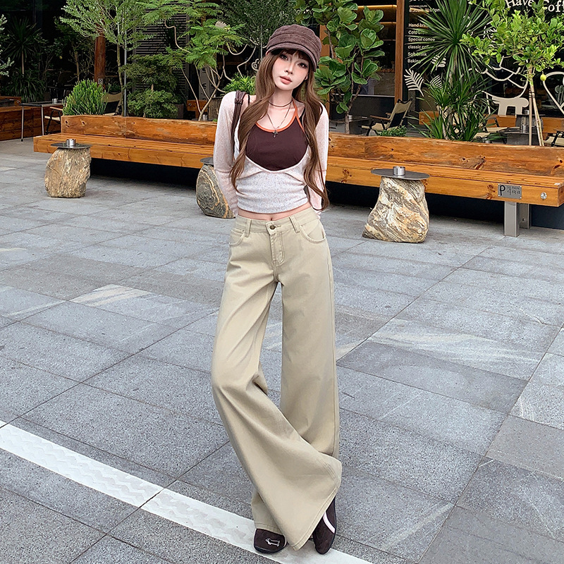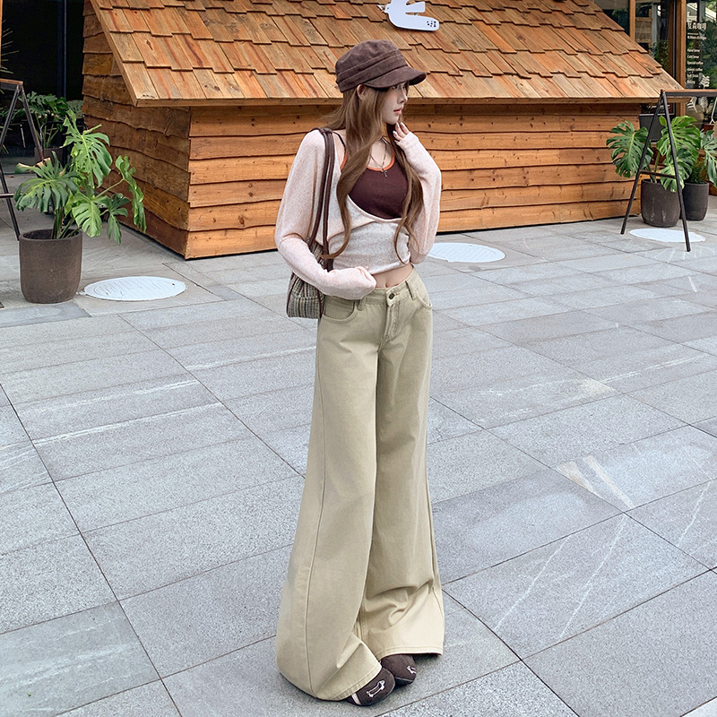 2025秋冬季加绒加厚不贴腿牛仔长裤女美式低腰宽松百搭阔腿喇叭裤
