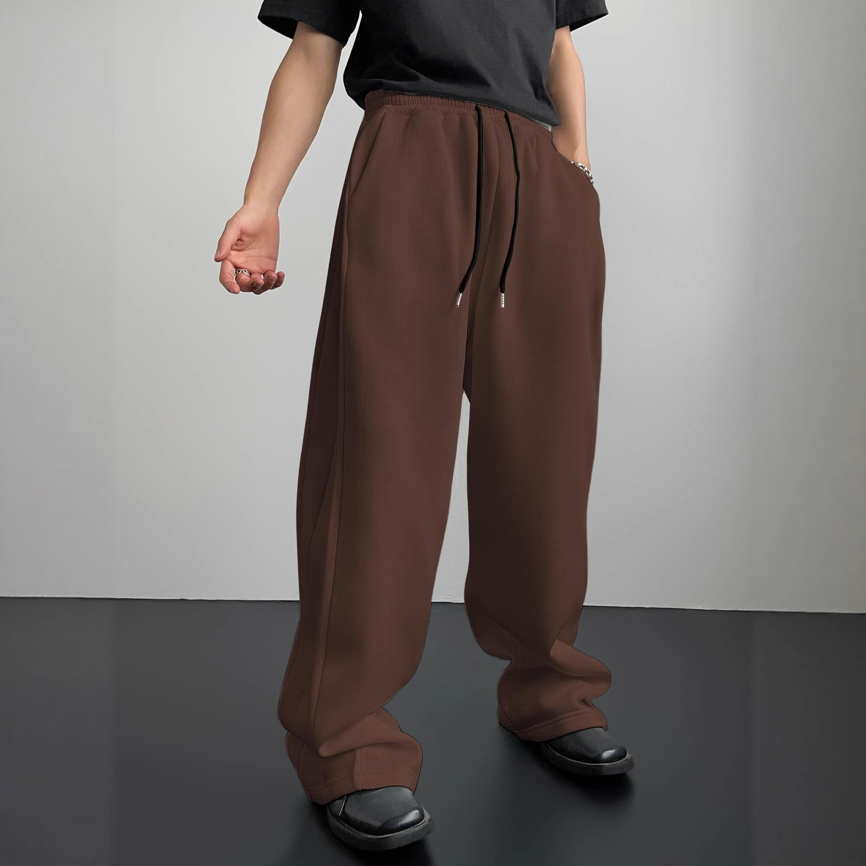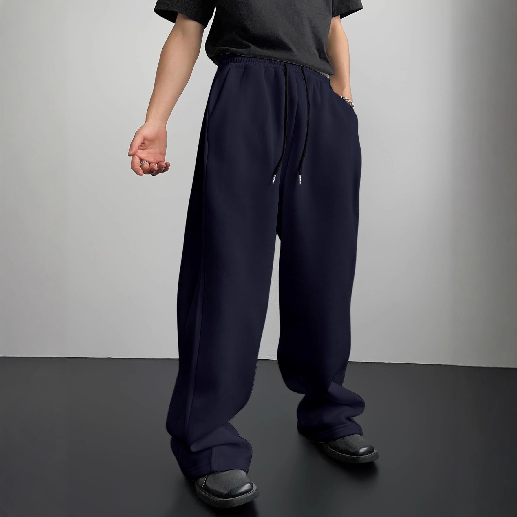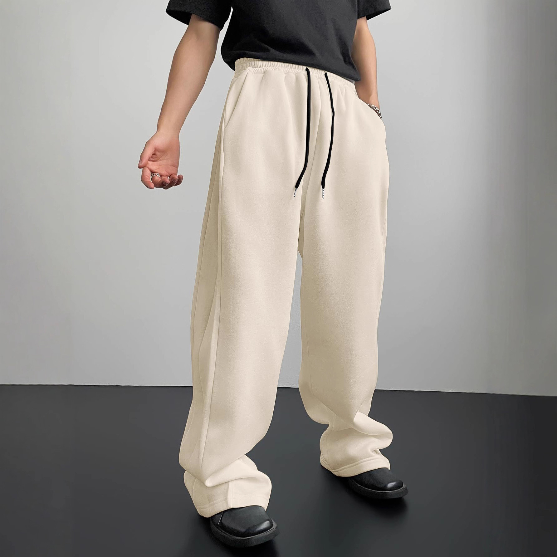 2026欧美亚马逊tk男式卫裤腰部抽绳直筒阔腿宽松长裤运动裤带口袋