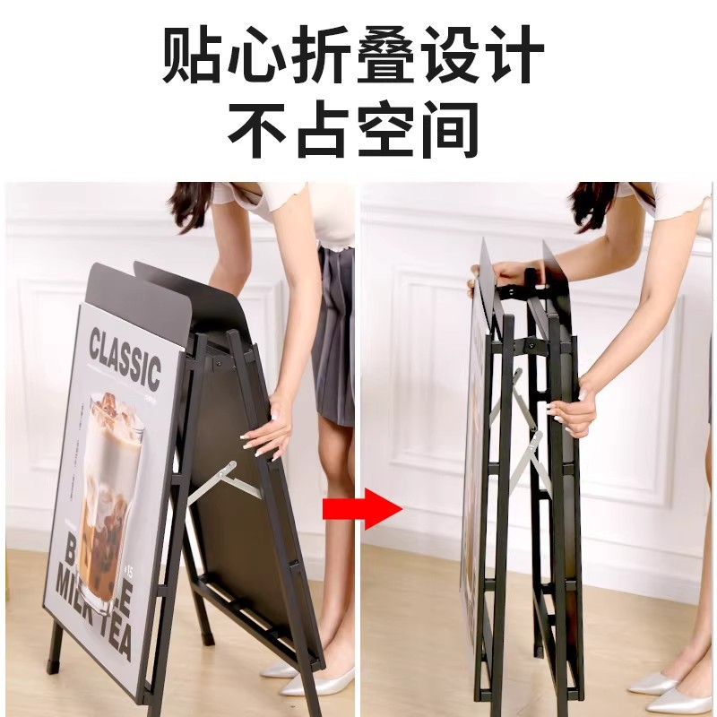 双面便捷海报架户外防风展示牌奶茶店咖啡店立牌平顶圆顶宣传架