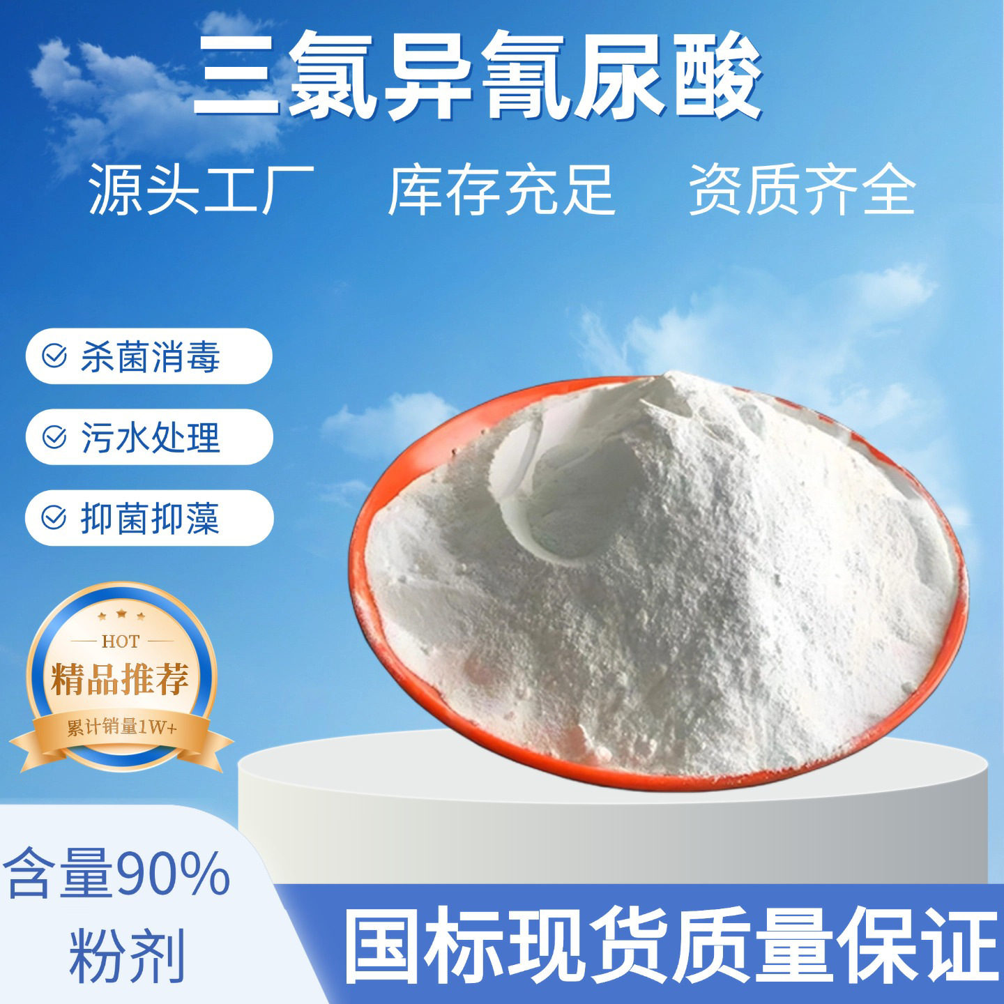 国标50KG90%含量工业水杀菌灭藻土壤杀菌消毒剂三氯异氰尿酸