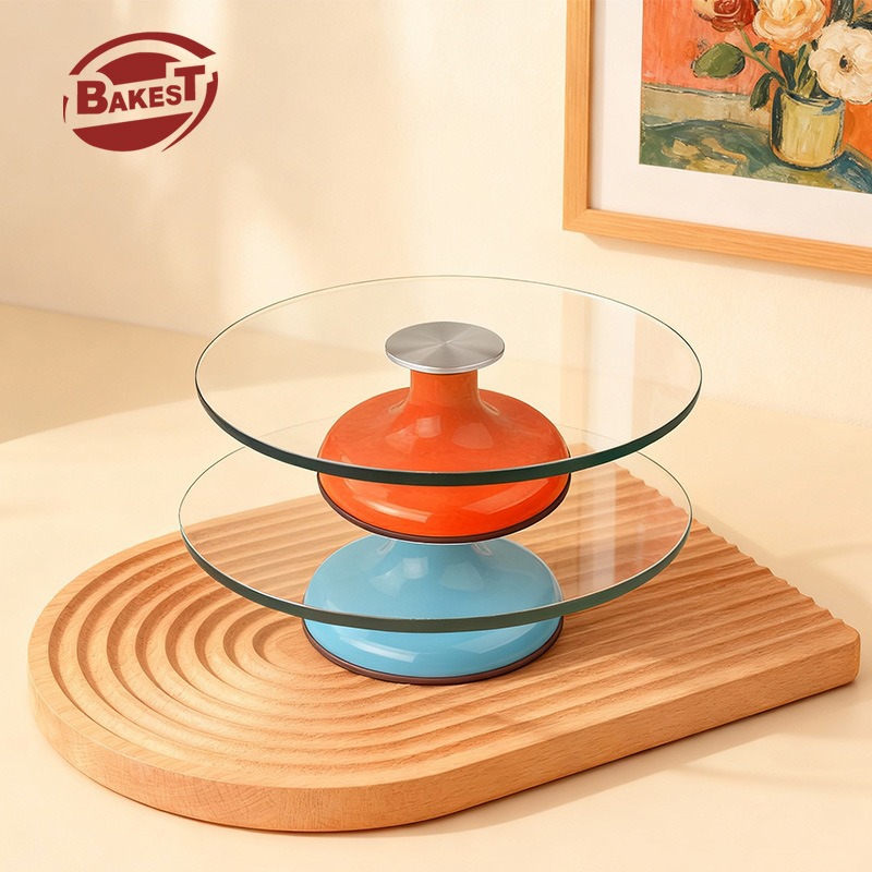 转盘蛋糕裱花台玻璃转台家庭商用烘焙蛋糕转台做生日蛋糕的工具