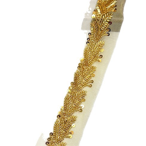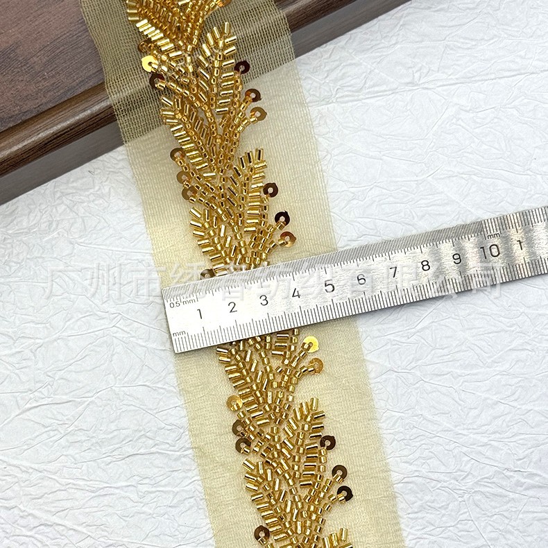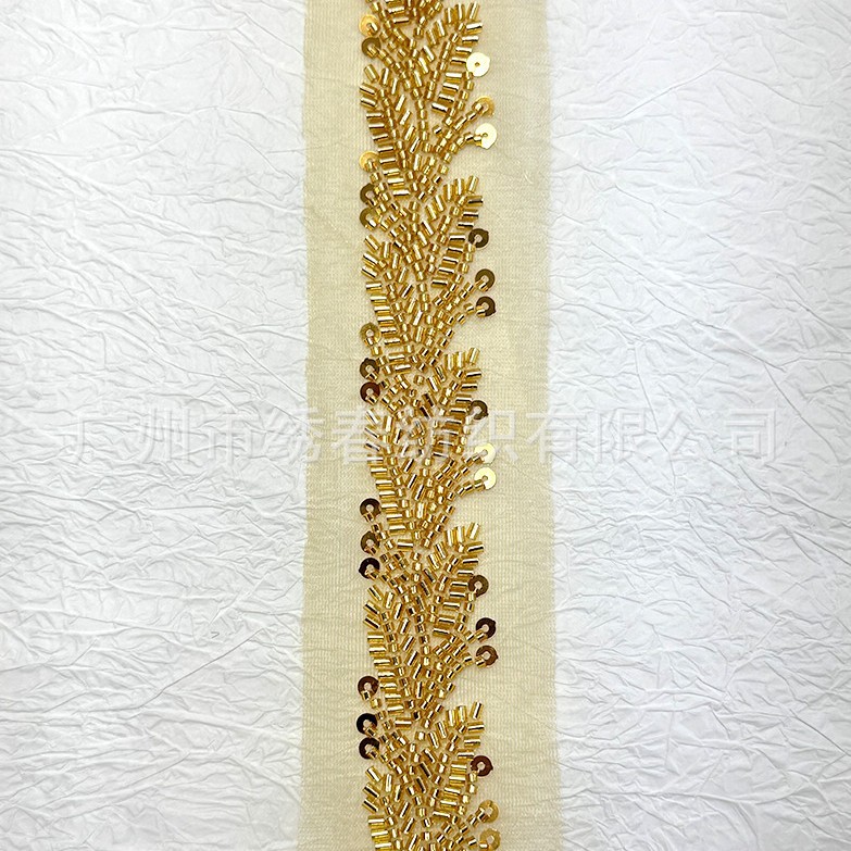 新款批发 珠管亮片刺绣花边 金色叶子珠绣手工钉珠花边服装辅料