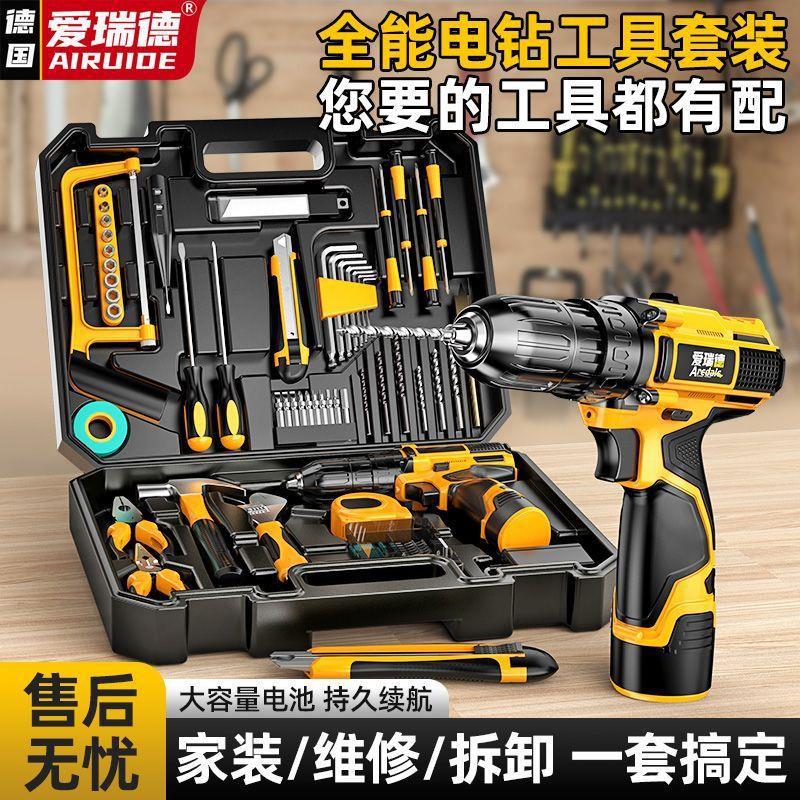 德国爱瑞德手电钻工具箱家用工具套装组合五金维修常用电动螺丝刀