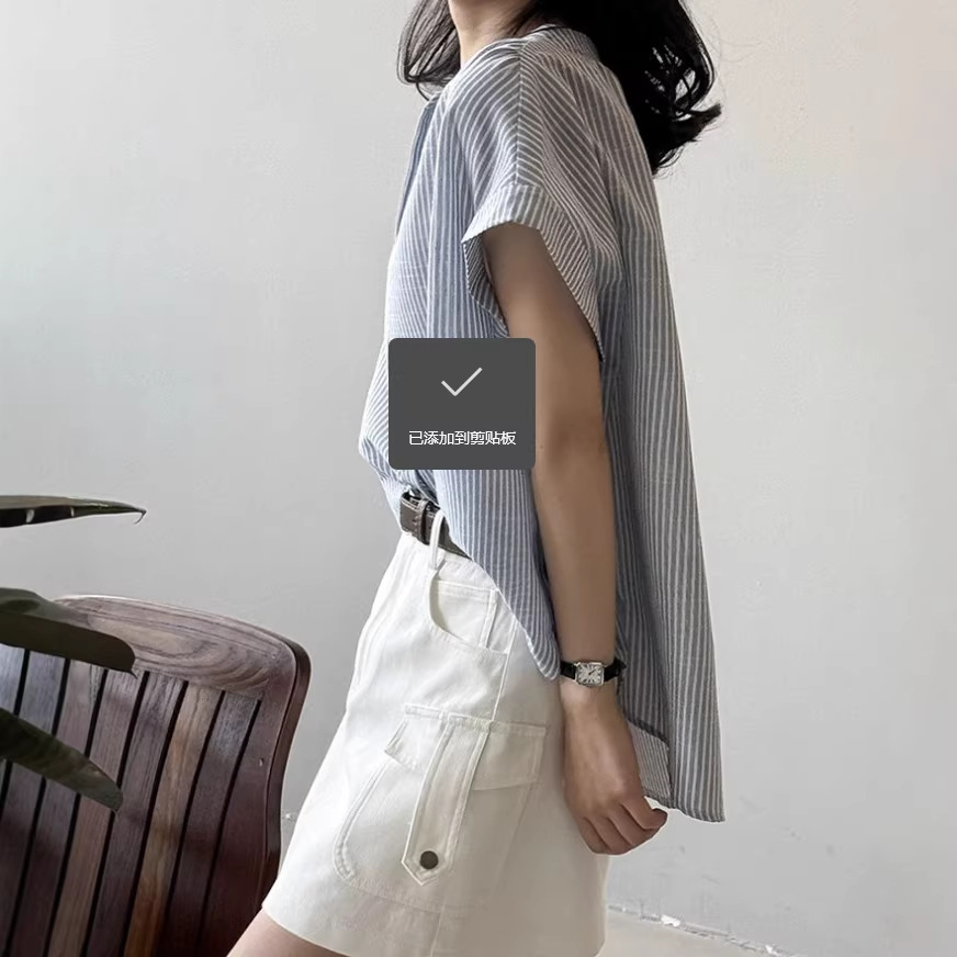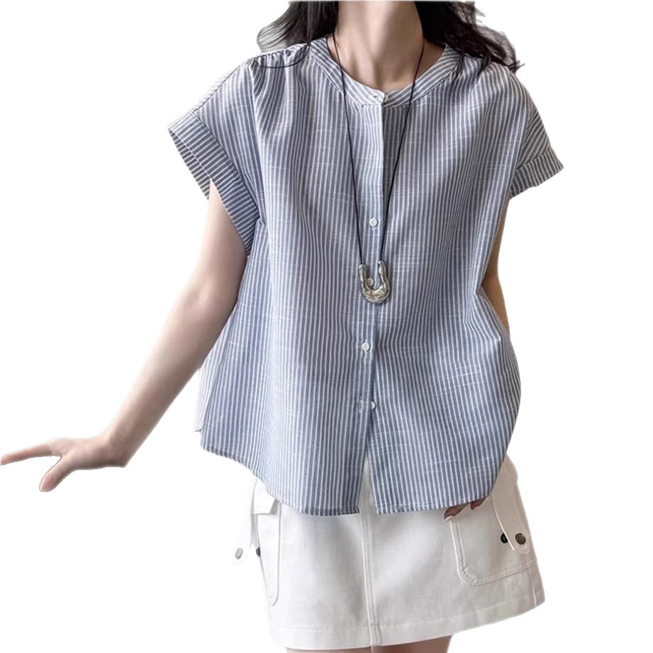 法式条纹圆领温柔风短袖衬衫女2026夏季新款宽松高级感气质上衣潮