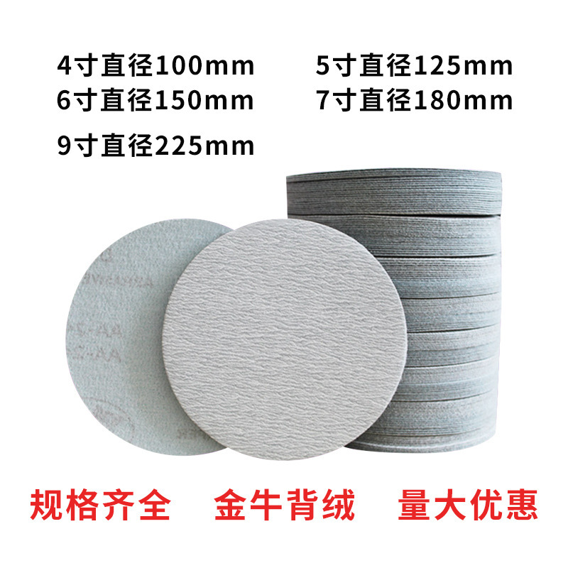 金牛4寸100植绒圆盘白砂纸家具底漆打磨圆磨片沙纸不锈钢抛光砂纸