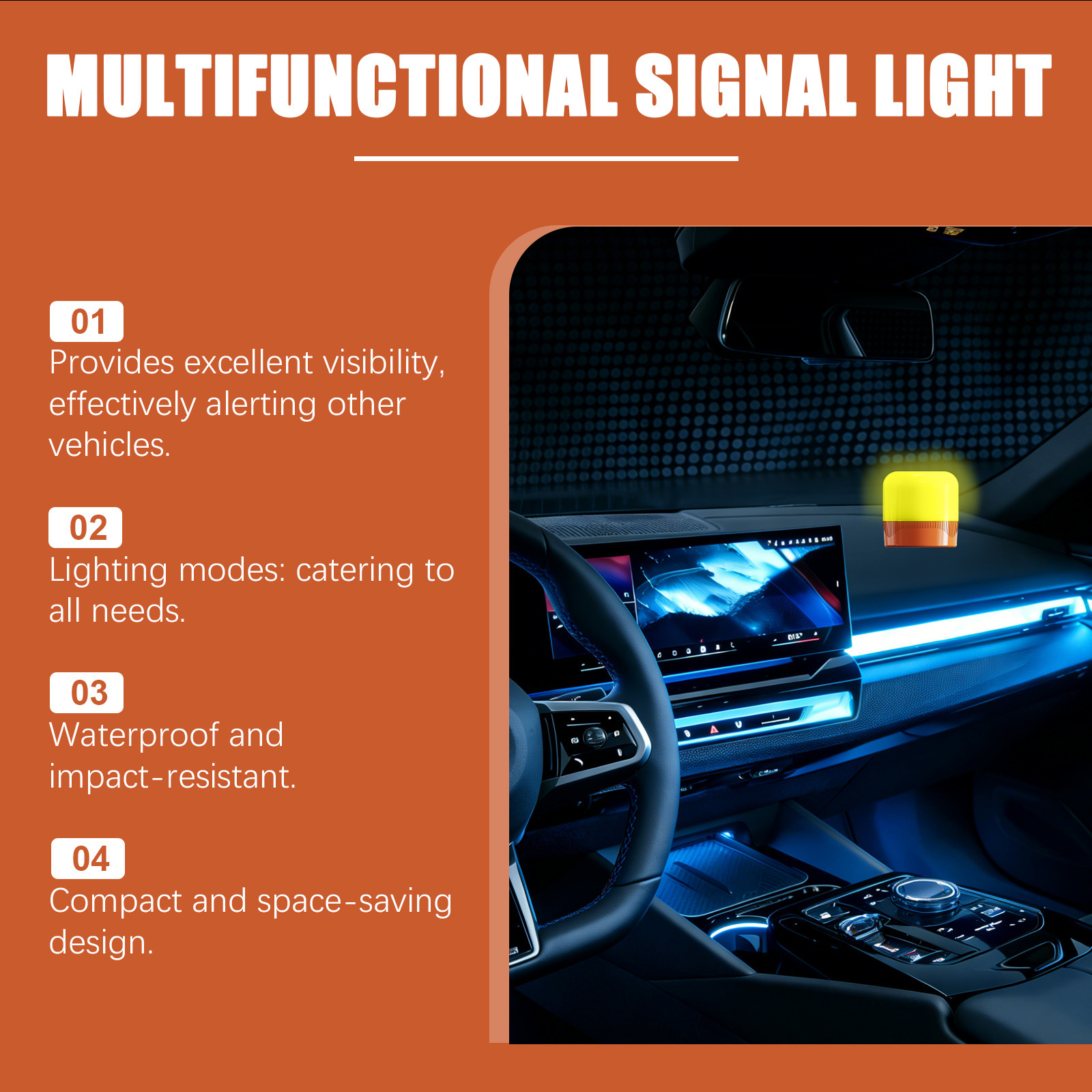 多功能应急灯 LED信号灯间歇功能防水PP材质黄色汽车LED警示灯