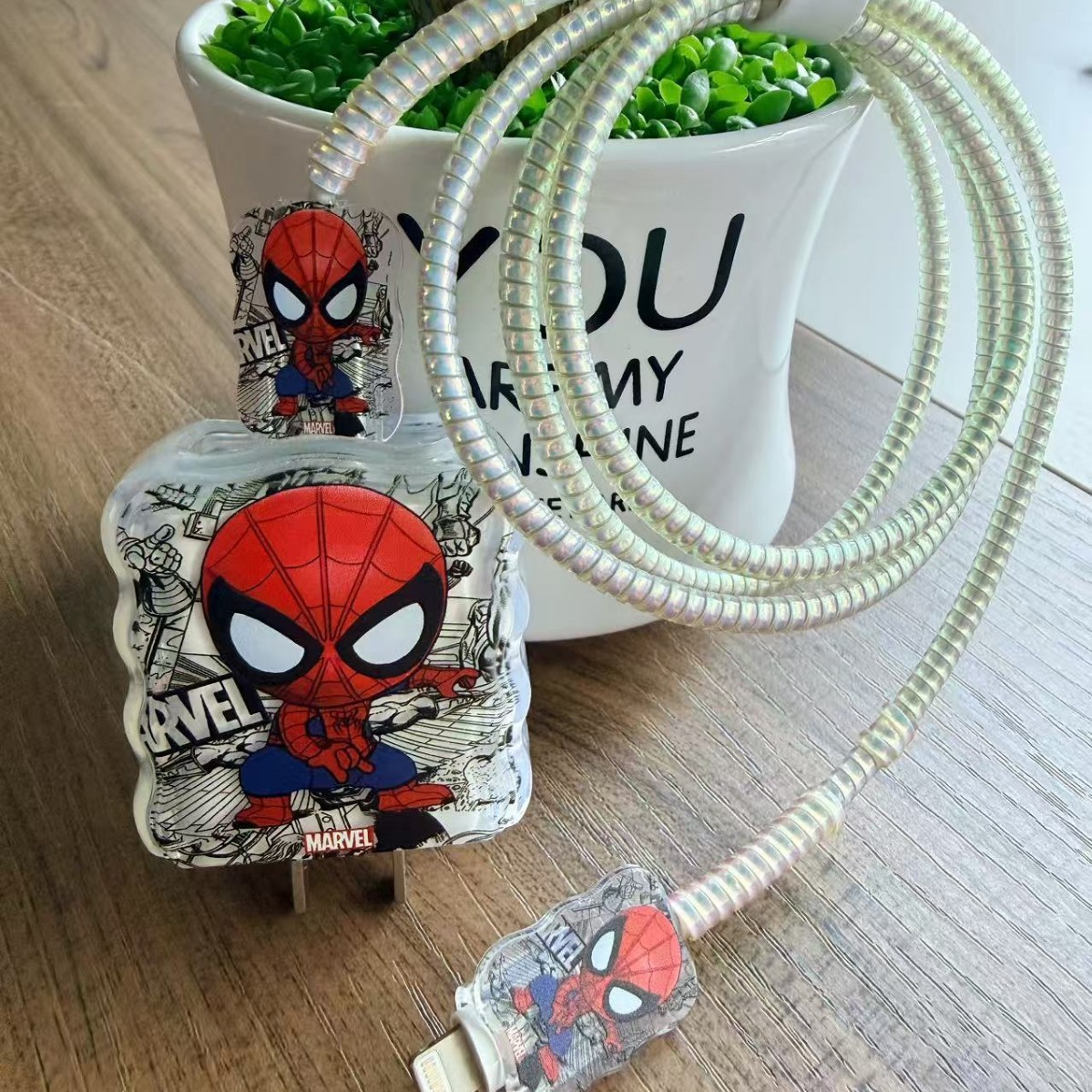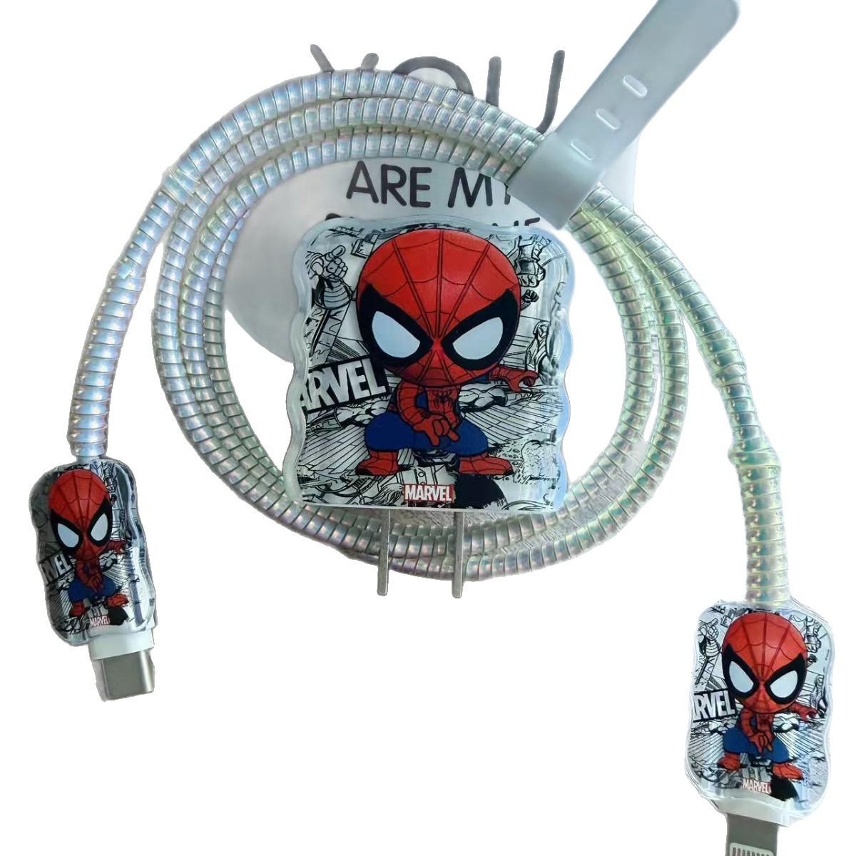 蜘蛛侠数据线保护套20w苹果15promax手机充电器壳适用iPhone1614