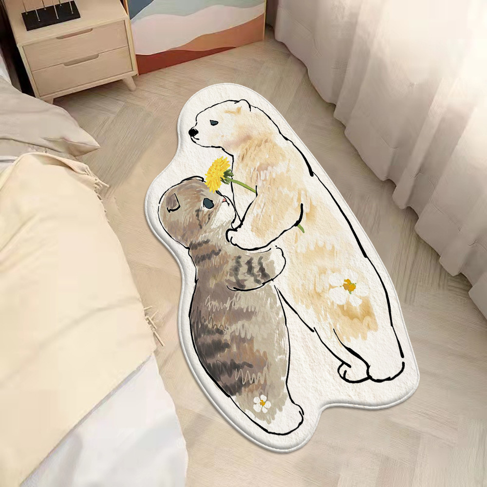 日韩ins风猫咪仿羊绒卧室床边毯异形家用加厚易打理地毯阳台地垫