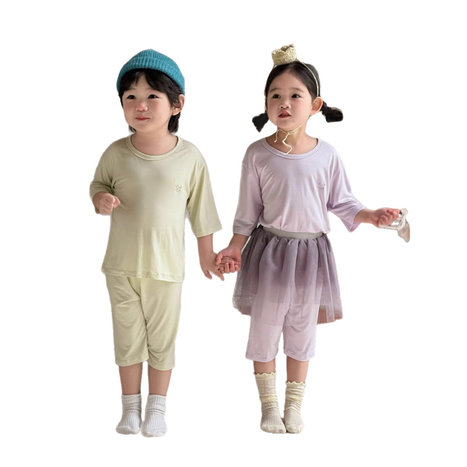 宝眠26儿童睡衣莫代尔男童短袖套装中小童女童七分袖家居服空调服