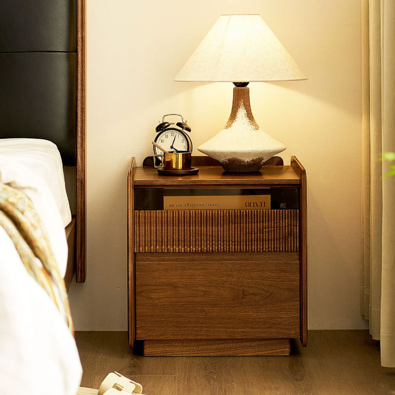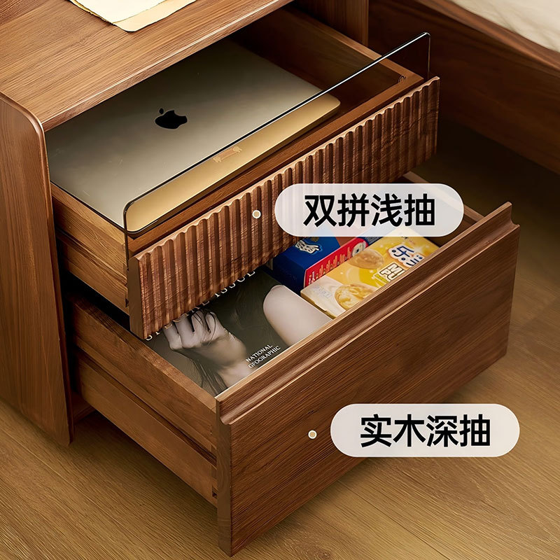 北美黑胡桃木全实木床头柜卧室原木樱桃木多功能储物柜收纳柜北欧