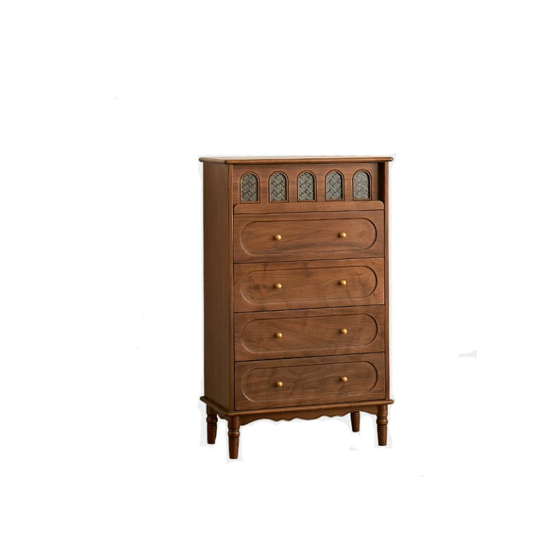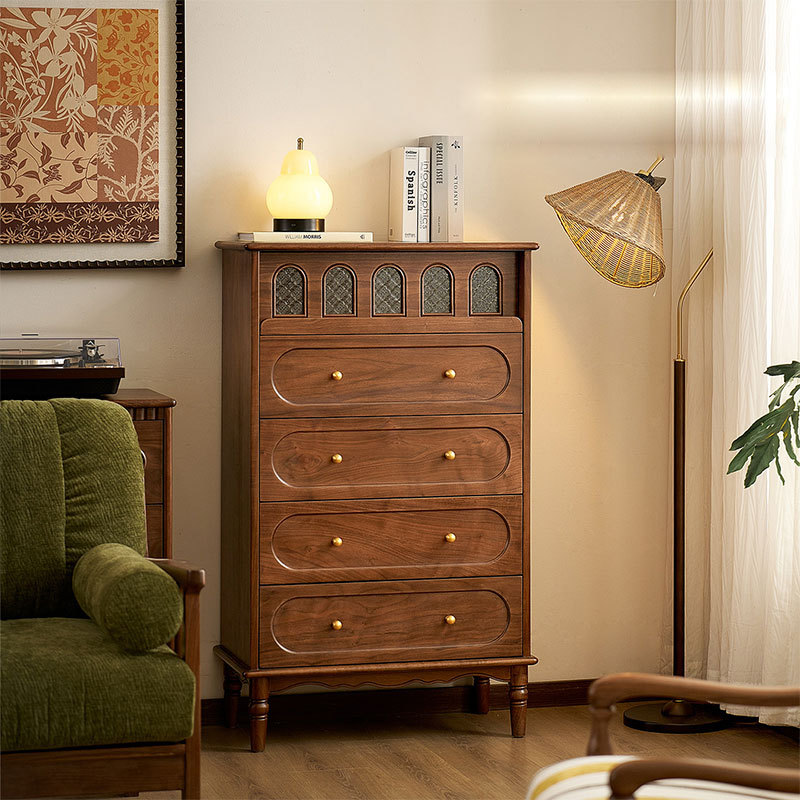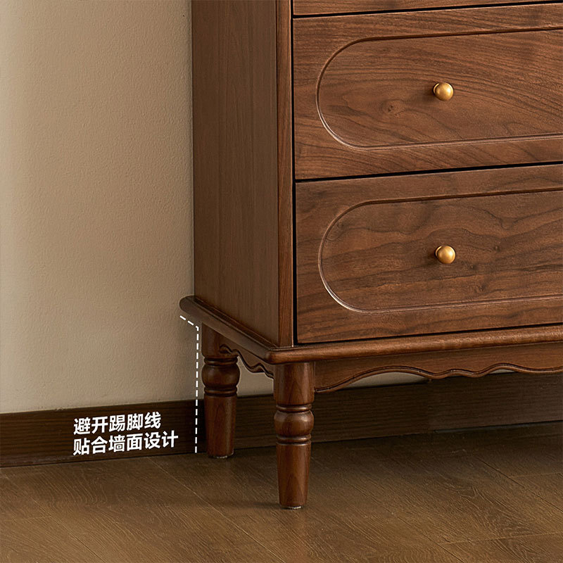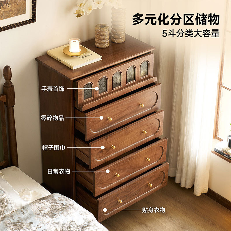 北美黑胡桃木五斗柜美式复古实木抽屉柜中古风客厅靠墙卧室储物柜