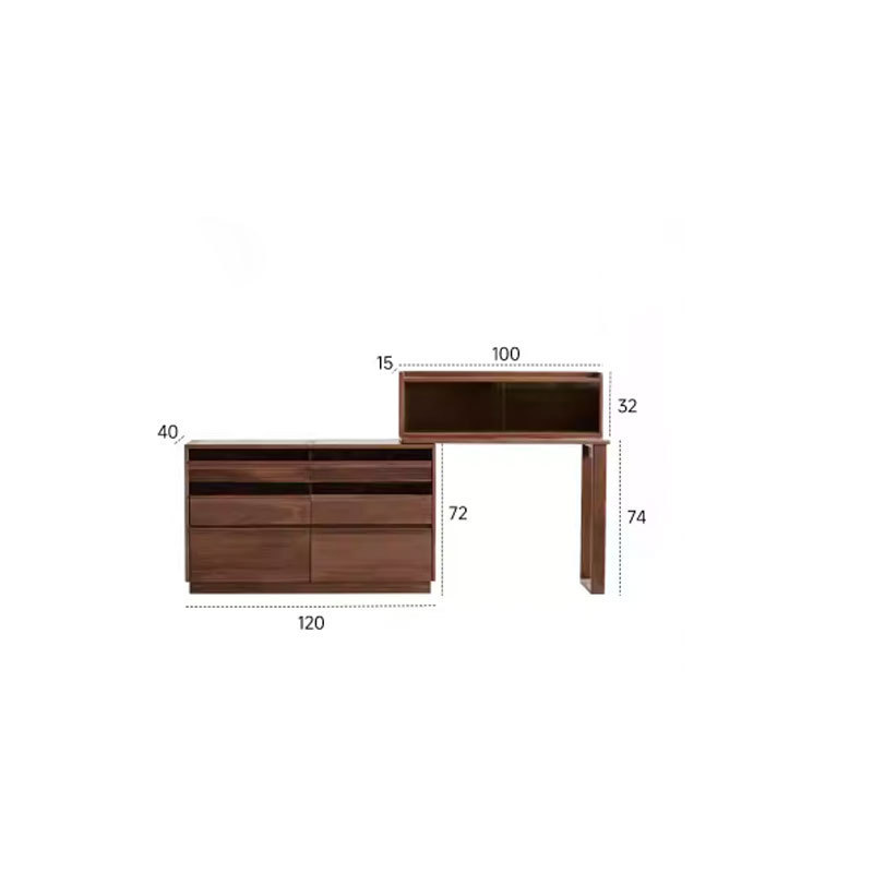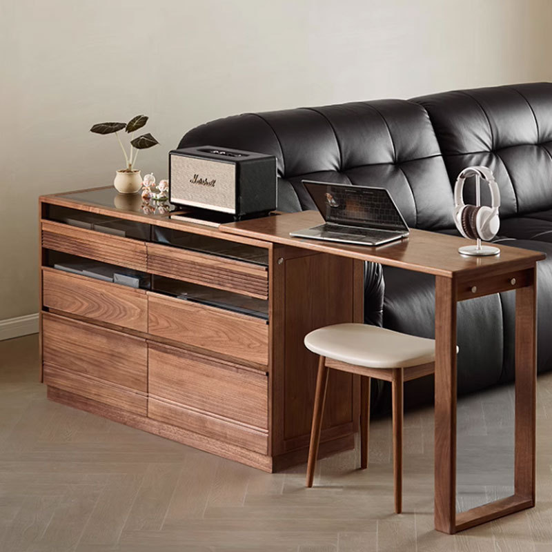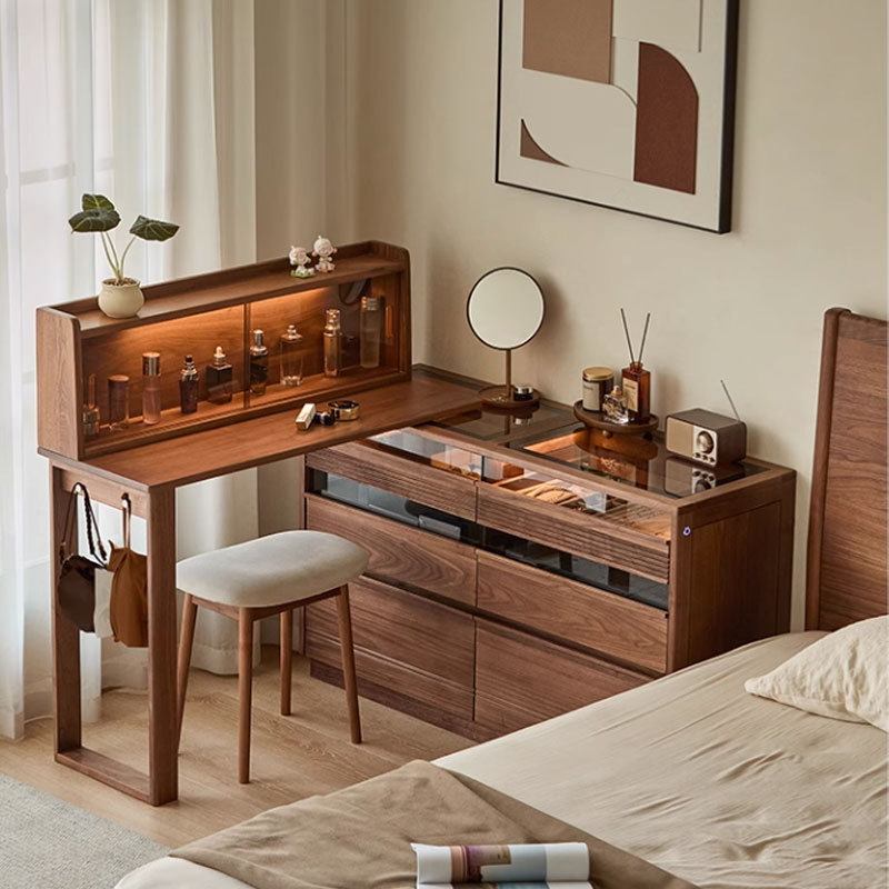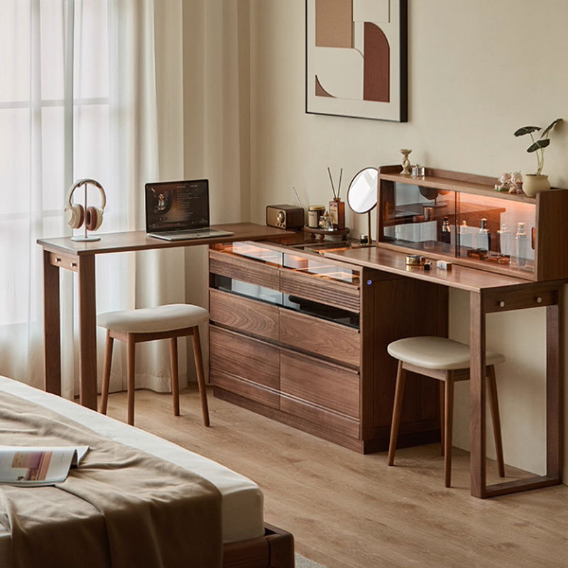 北美黑胡桃木伸缩梳妆台斗柜一体北欧简约卧室实木化妆桌子中古风