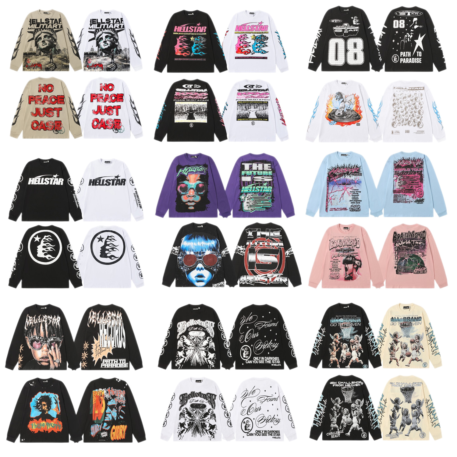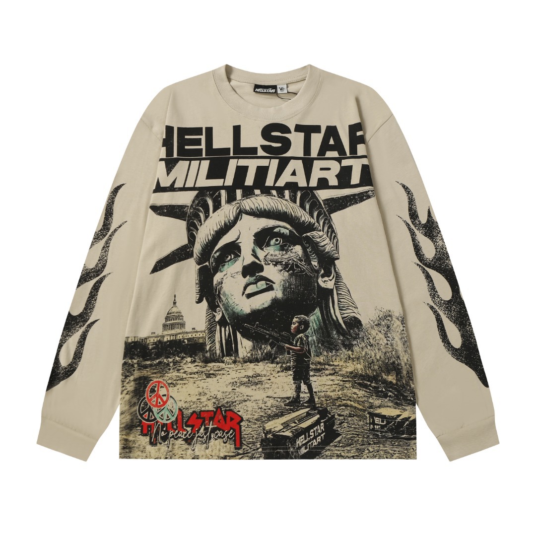 hellstar地狱之星长袖T恤圆领卫衣欧美潮牌印花外贸批发