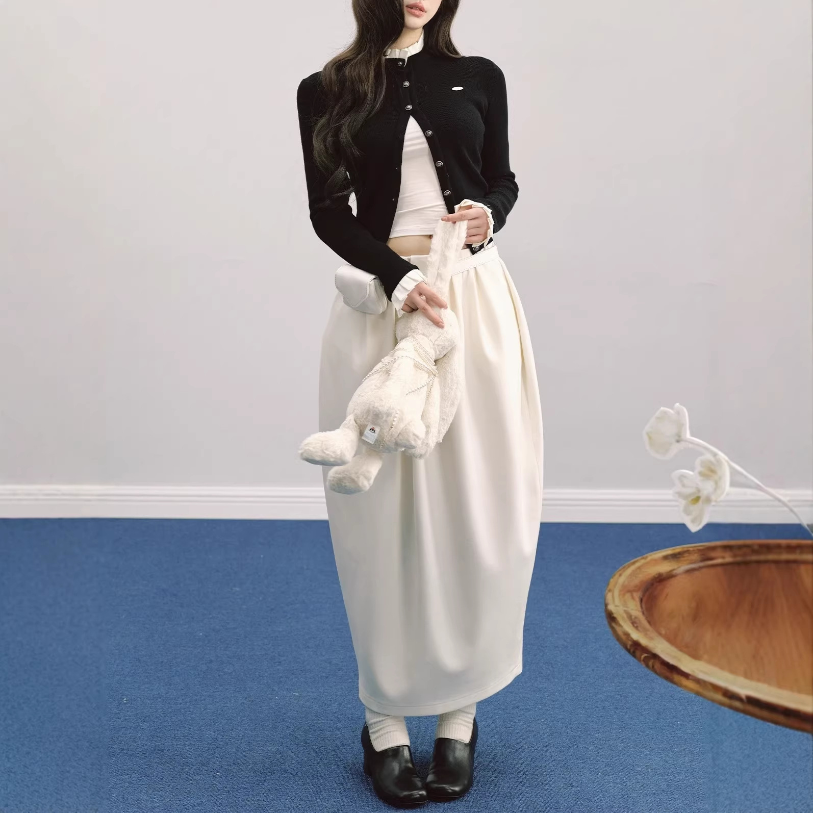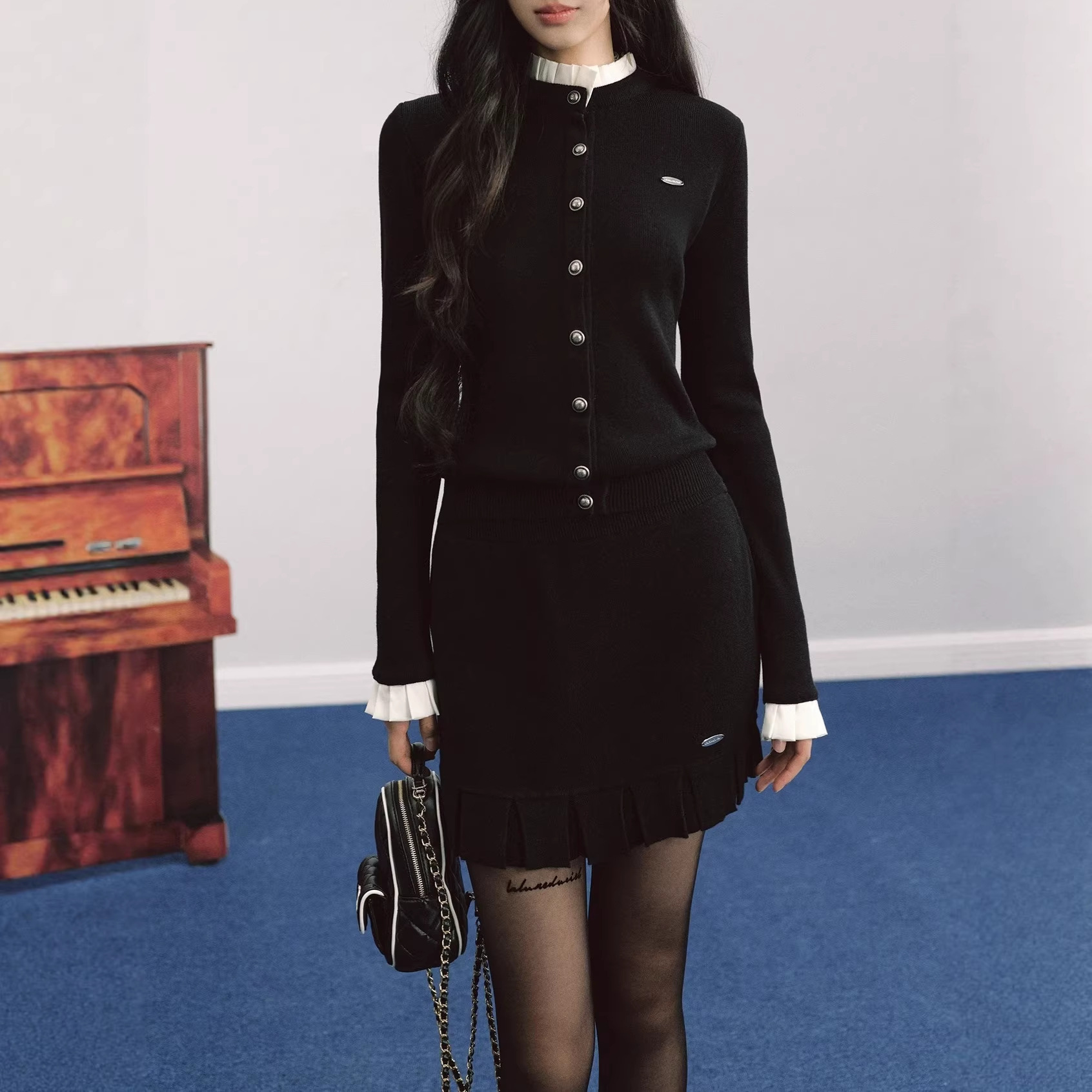 LaluneDuCie 法式宫廷风木耳边立领针织开衫女气质撞色修身上衣