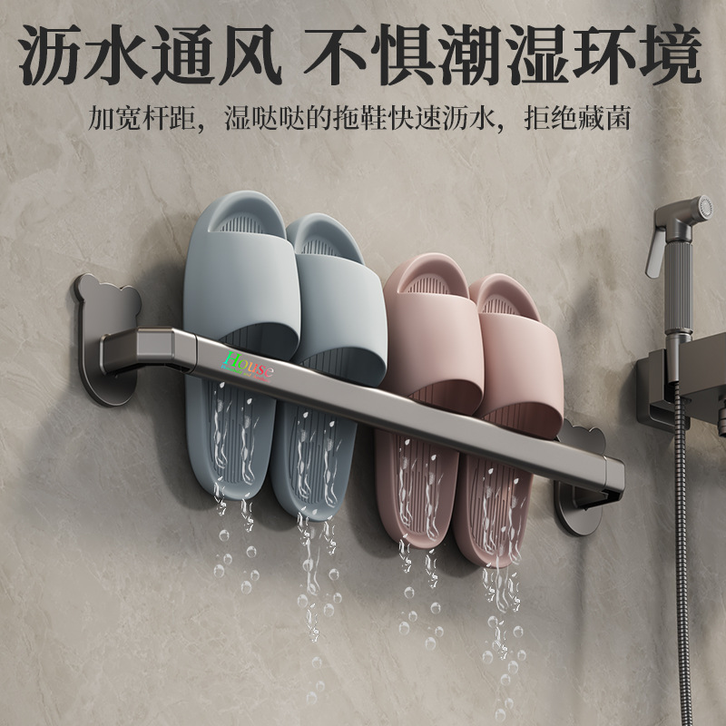 卫生间毛巾杆挂架壁挂式小熊拖鞋架置物架免打孔多功能收纳架鞋架