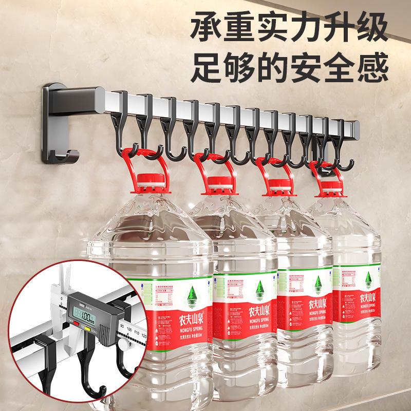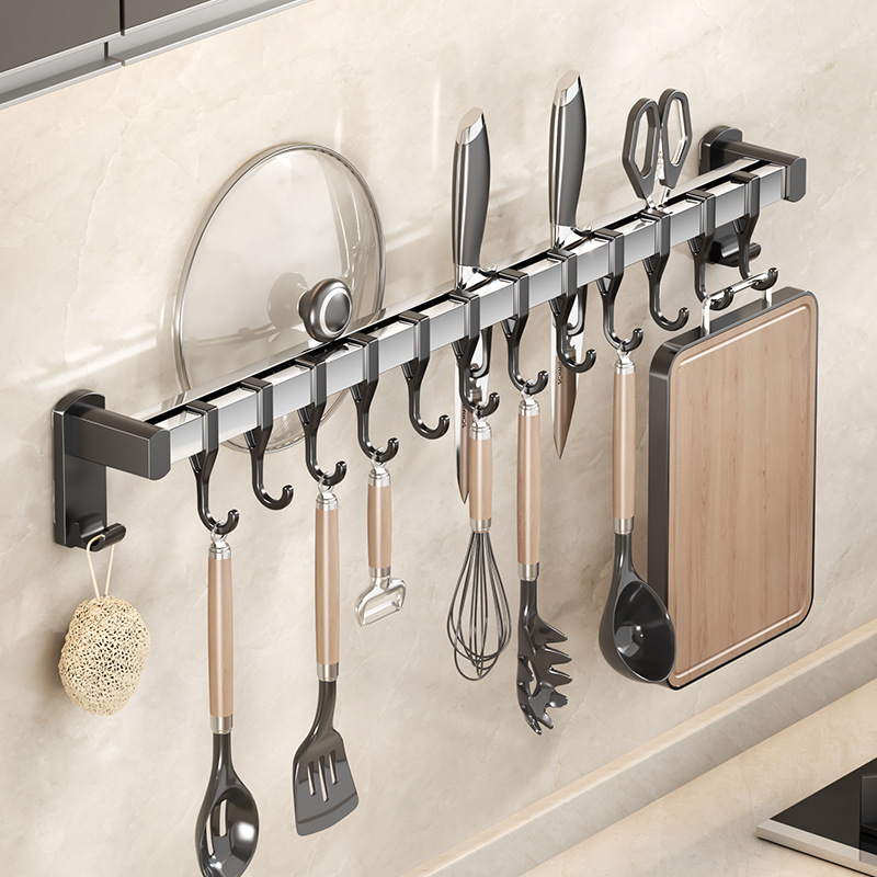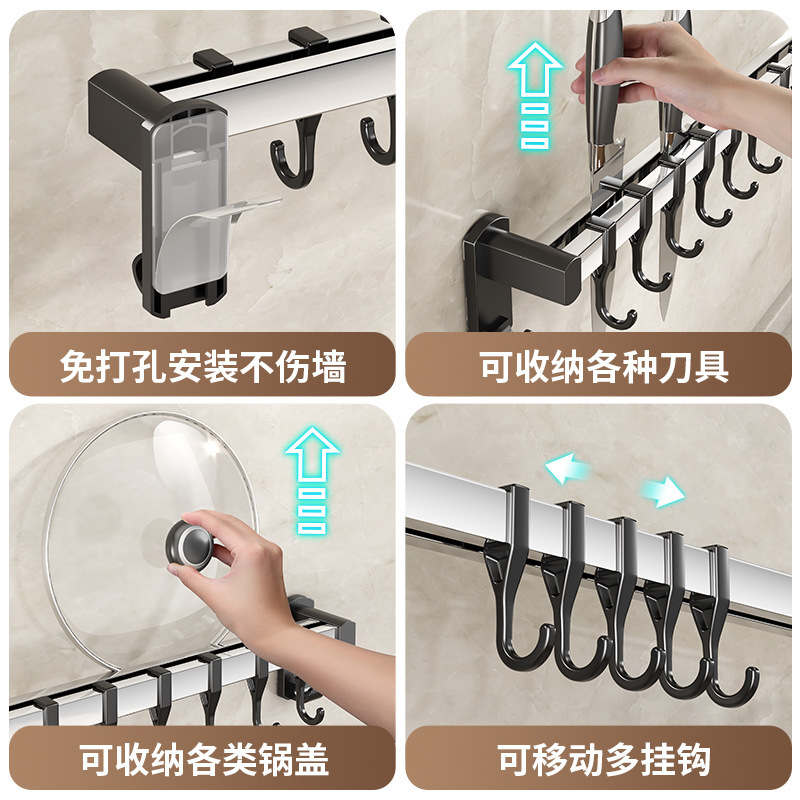 新款免打孔挂钩厨房多功能置物架黑色无痕粘钩壁挂式锅盖收纳刀架