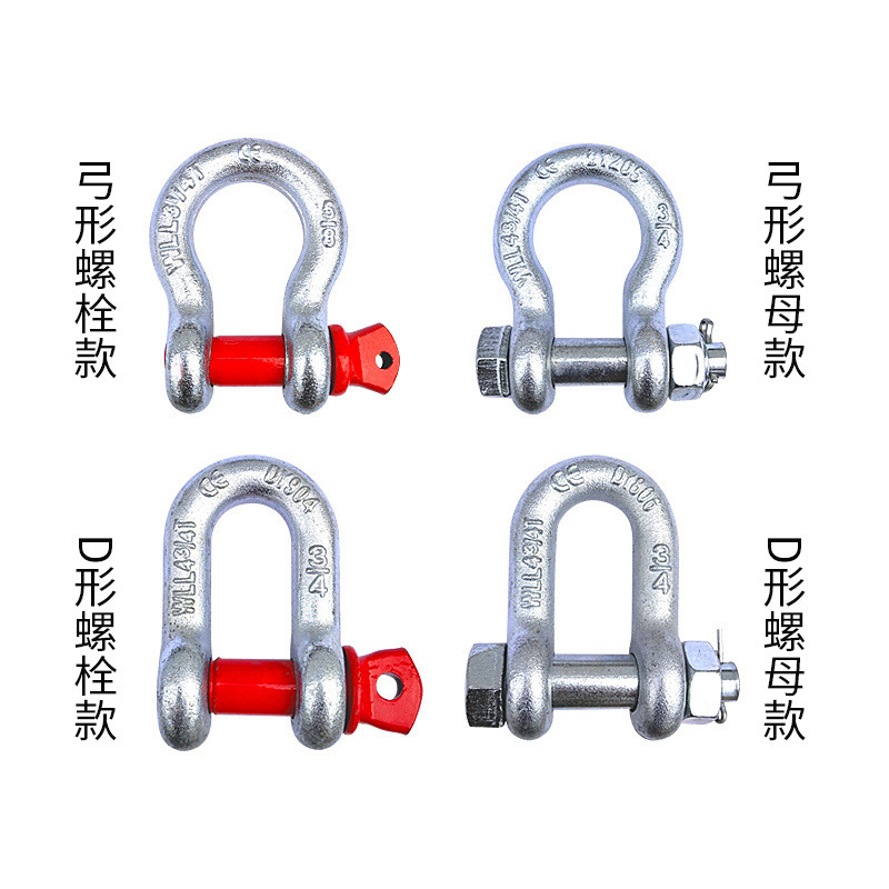 美式弓形卸扣6倍安全系数国标D型连接扣不锈钢u型环镀锌重型卸扣