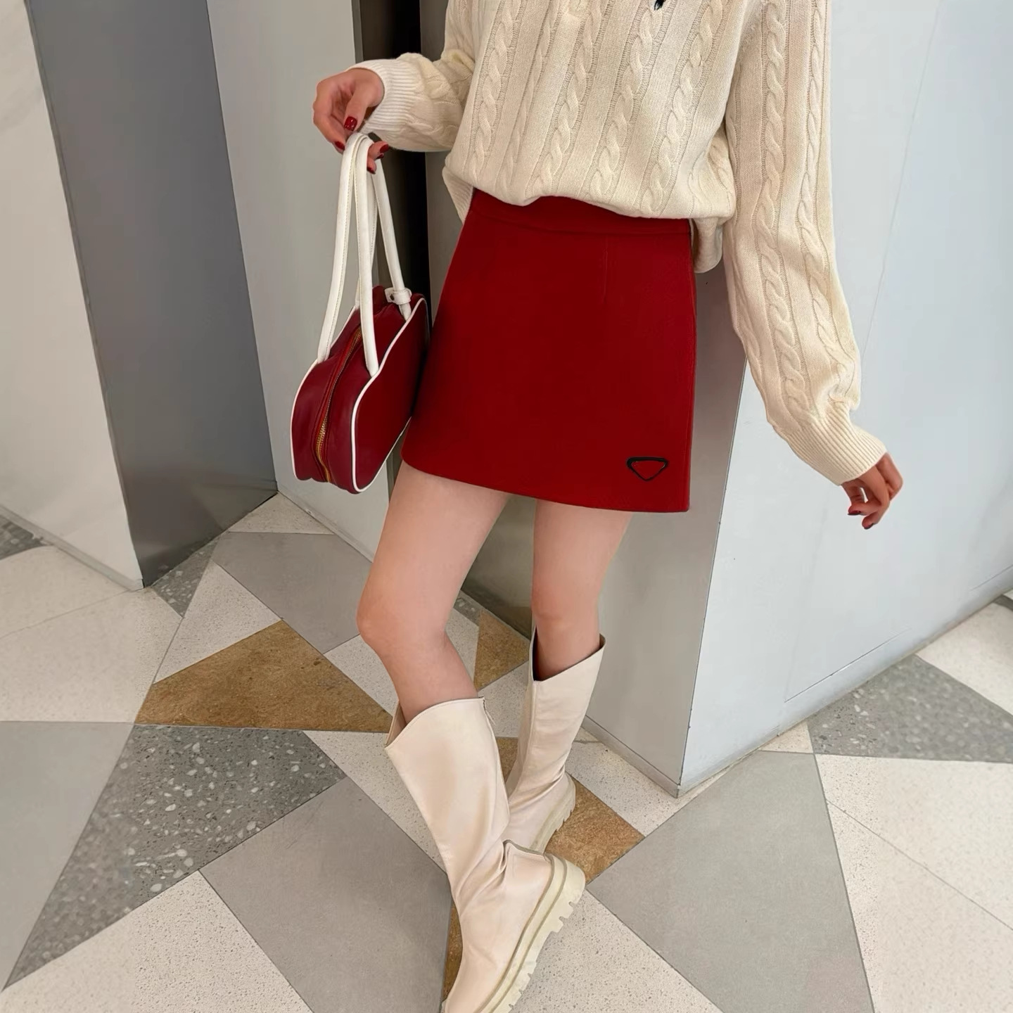2026春夏PD新款经典撞色徽标装饰设计休闲百搭气质显瘦A摆裙裤潮