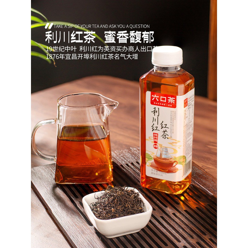 六口茶湖北恩施玉露利川红冷萃原味茶饮料0糖0卡0脂500ml*8瓶