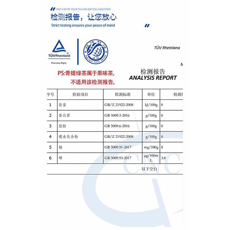 包装规格青提绿茶500ml*8瓶(果味茶)