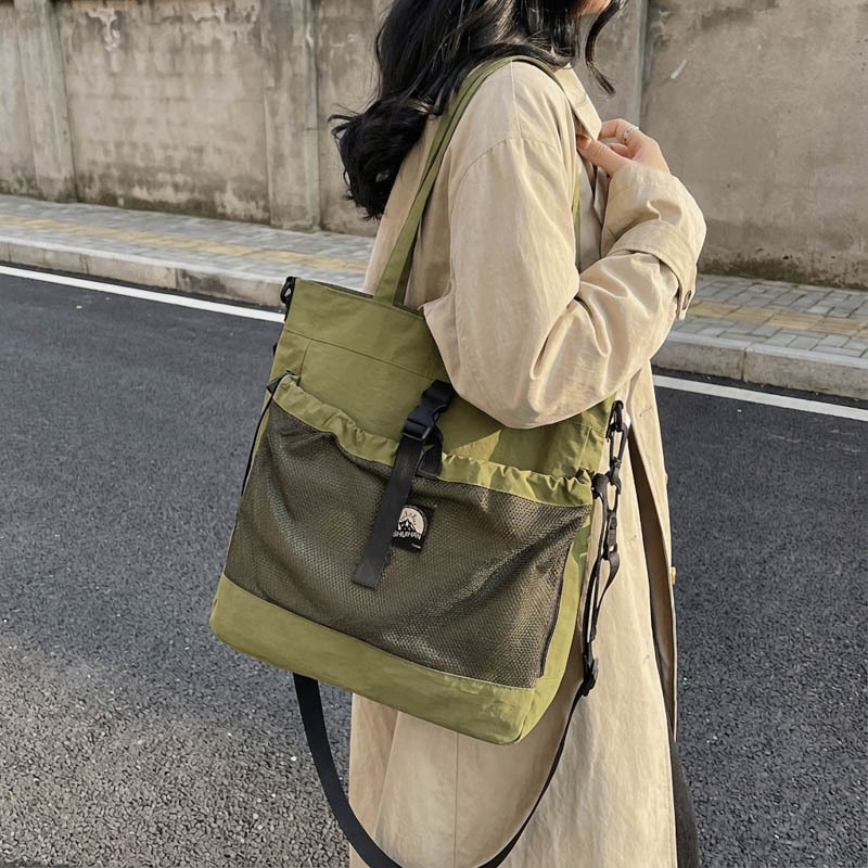 2025新款大容量单肩包女韩版通勤托特包尼龙网兜斜挎包时尚百搭学