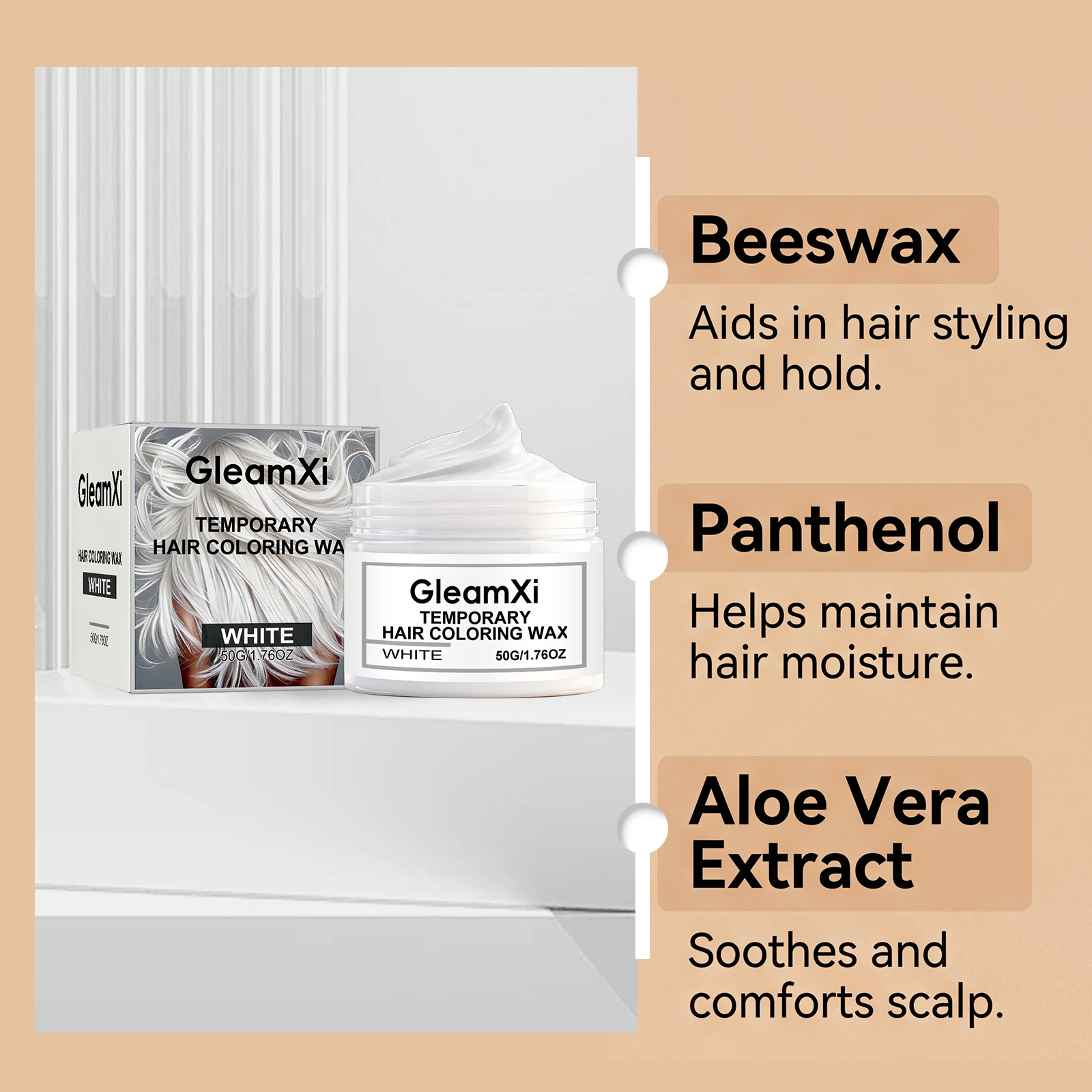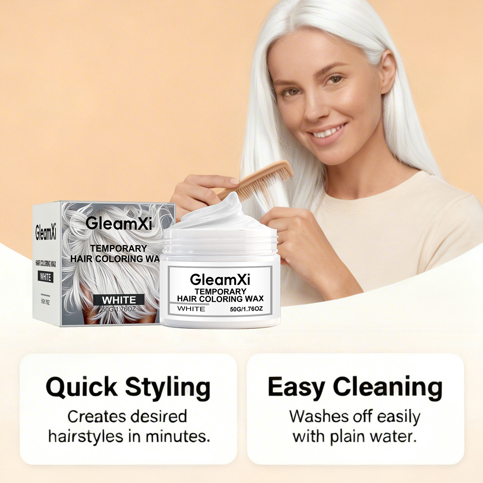 GleamXi 白色临时美发剂 温和成分日派对发型变装自然显色易操作