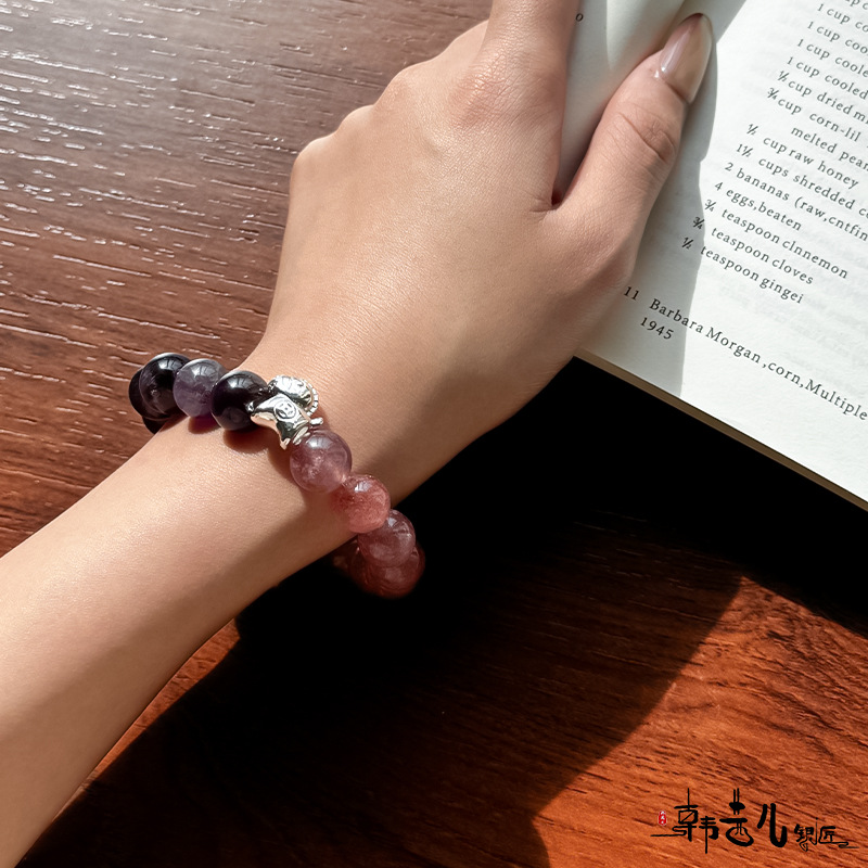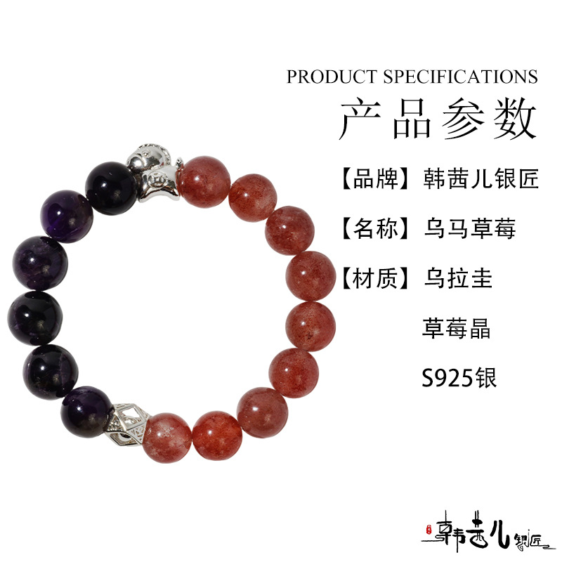 韩茜儿银匠天然乌拉圭草莓晶时尚高级百搭手串手链招财ZB0035