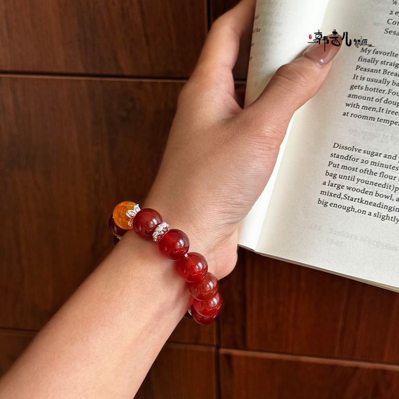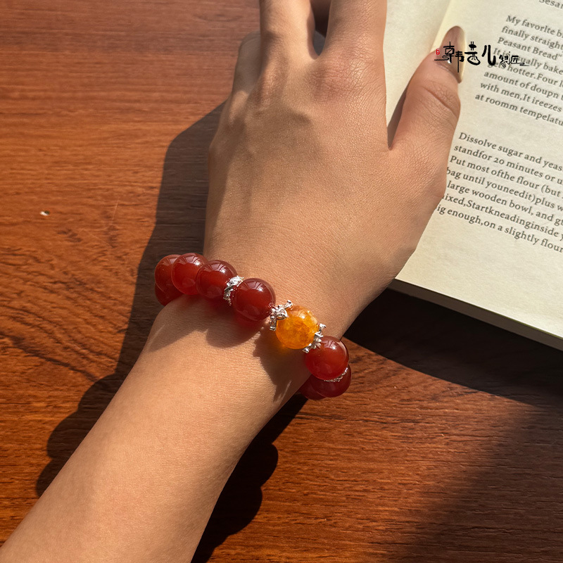 韩茜儿银匠天然红胶花黄玛瑙时尚高级百搭手串手链招财SC0208