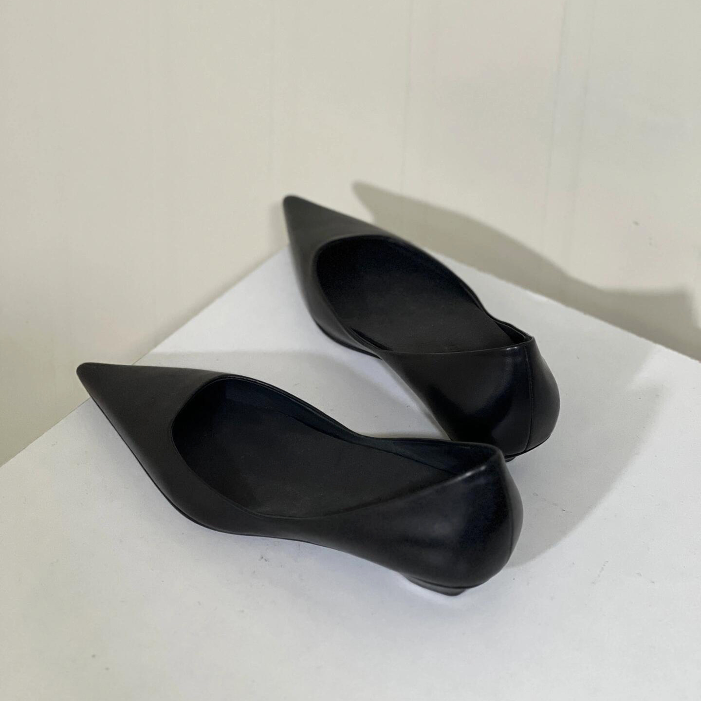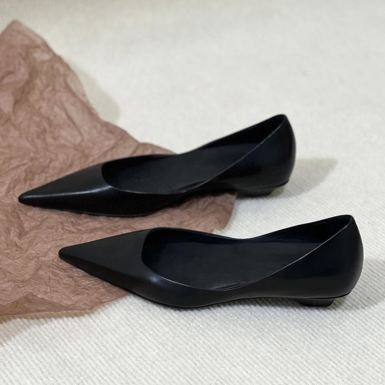 羊皮版~小众法式尖头单鞋女浅口真皮百搭锥形跟高跟鞋通勤工作鞋
