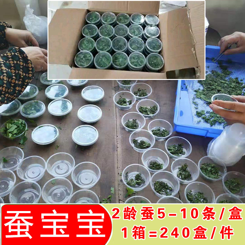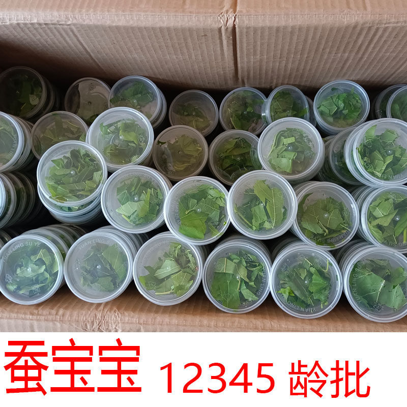 规格 | 新鲜桑叶5斤 | | 规格 | 1龄蚕5-10条装/小盒60盒/蚕偏小 |