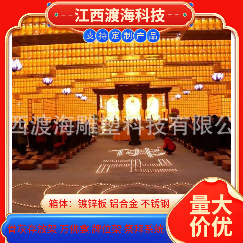主营产品:骨灰存放架,骨灰盒寄存架,福寿架,万佛龛,牌位架,殡仪馆祭拜系统,寺院智能化管理系统、龙骨吊顶、智能骨灰寄存架