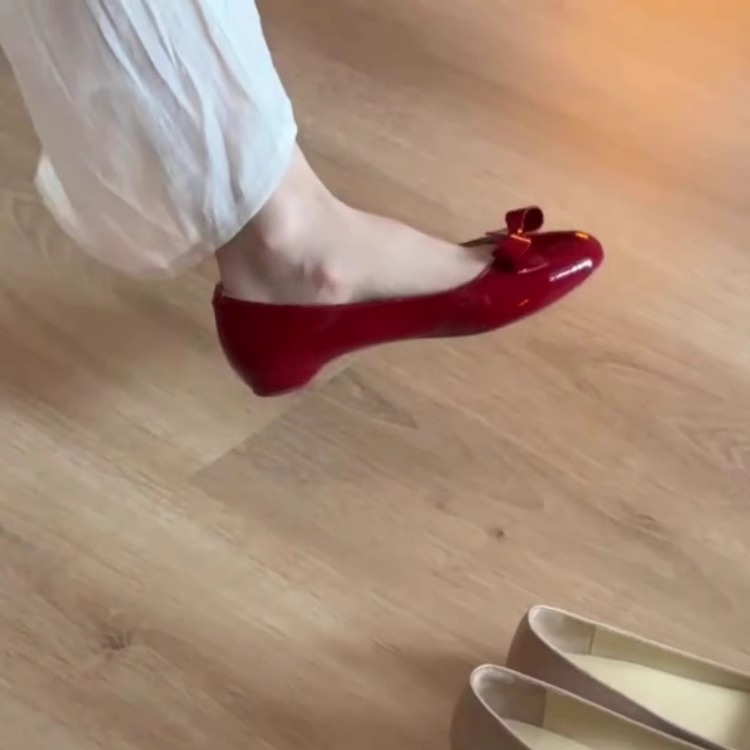 内增高版~法式蝴蝶结真皮浅口单鞋女平底气质一脚蹬瓢鞋绝美婚鞋