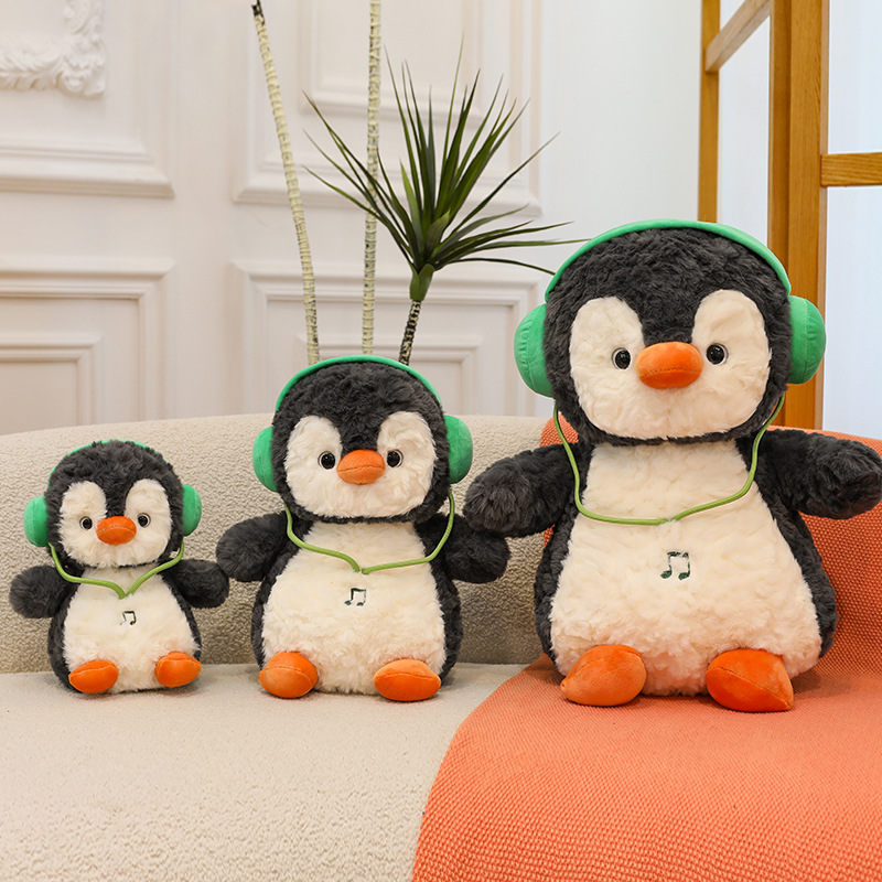 动感企鹅公仔毛绒玩具趣味耳机可爱胖墩卡通布娃娃玩偶女生礼物