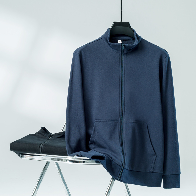 新款春秋外套男日常通勤广告衫外套300G针织立领拉链纯色开衫上衣