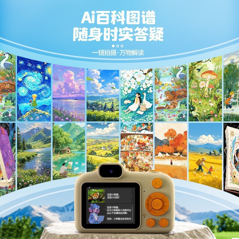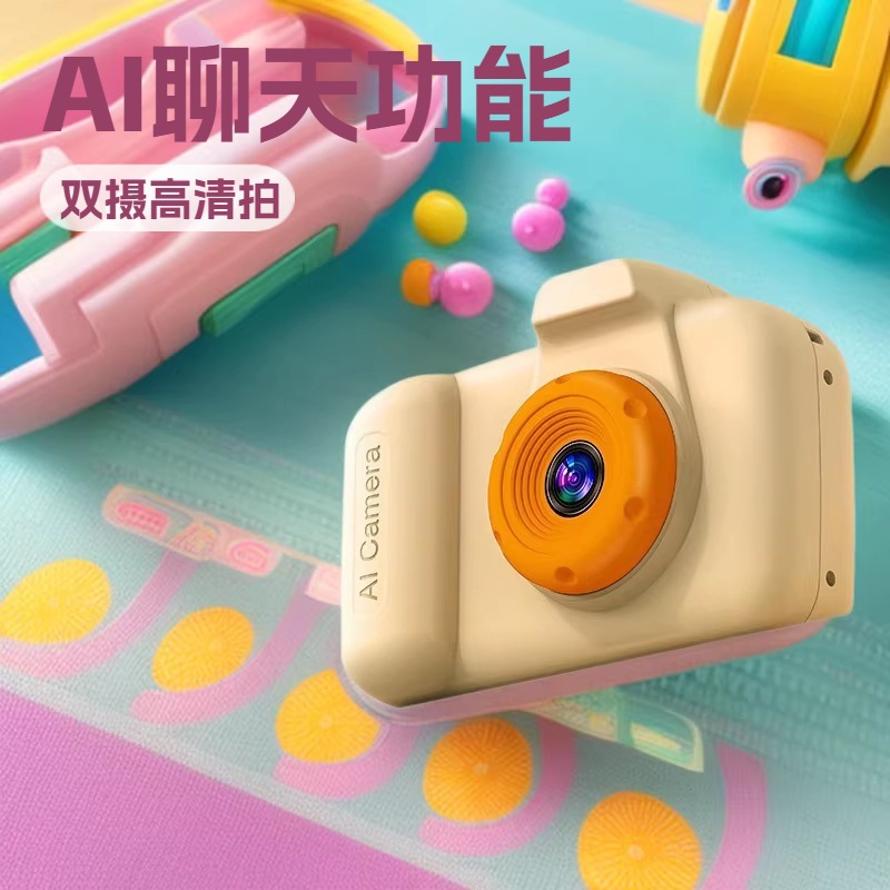 新款AI儿童相机玩具迷你小单反数码拍照高清双摄可识物翻译AI聊天