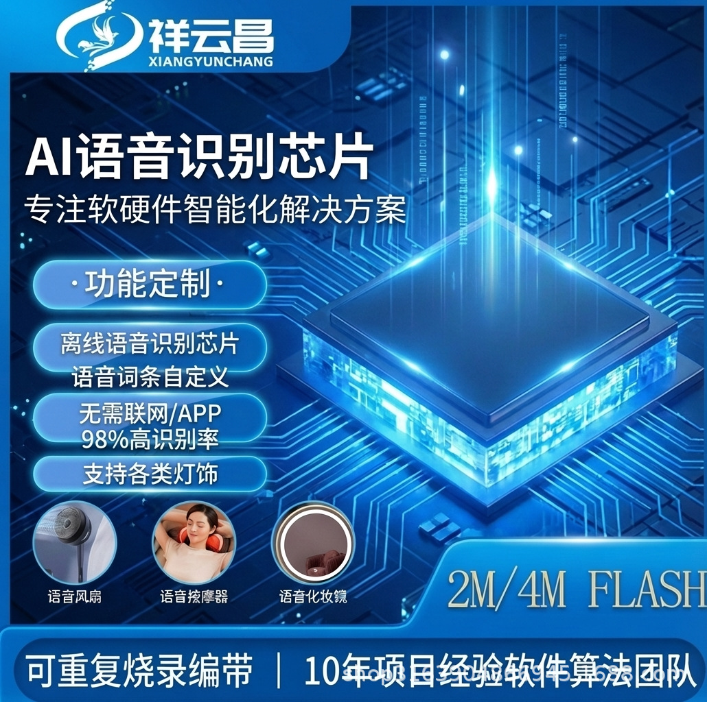 祥云昌语音识别语音算法IC应用于小夜灯无需蓝牙wifi嵌入式