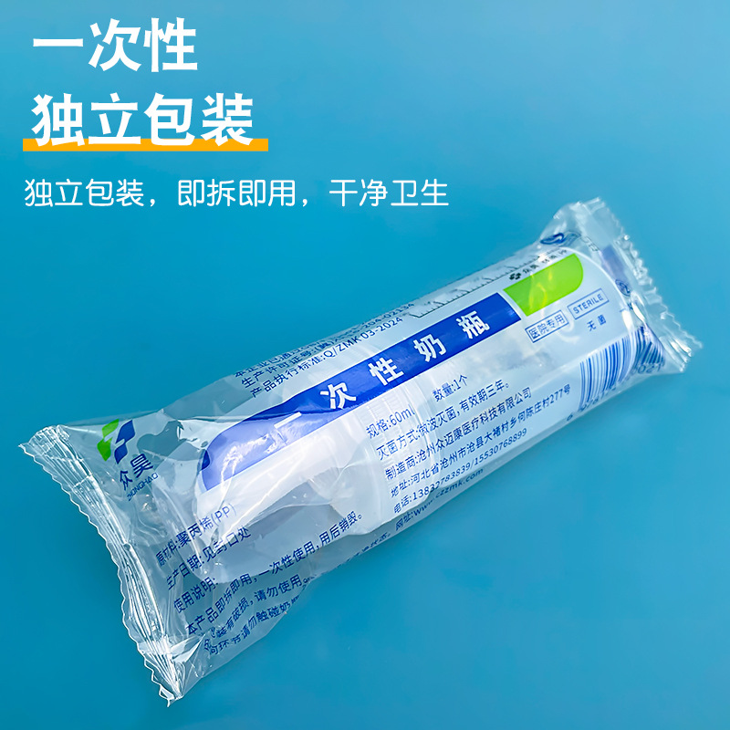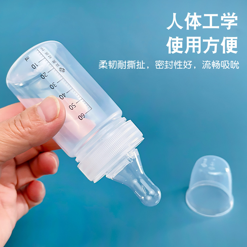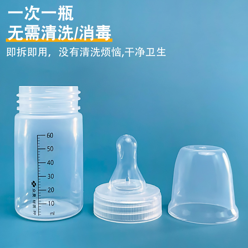 厂家批发60ml新生儿一次性宽口PP喂奶瓶仿母乳软奶嘴即拆即用便携