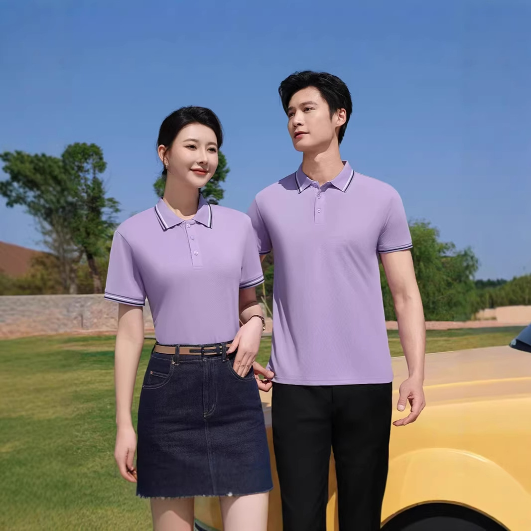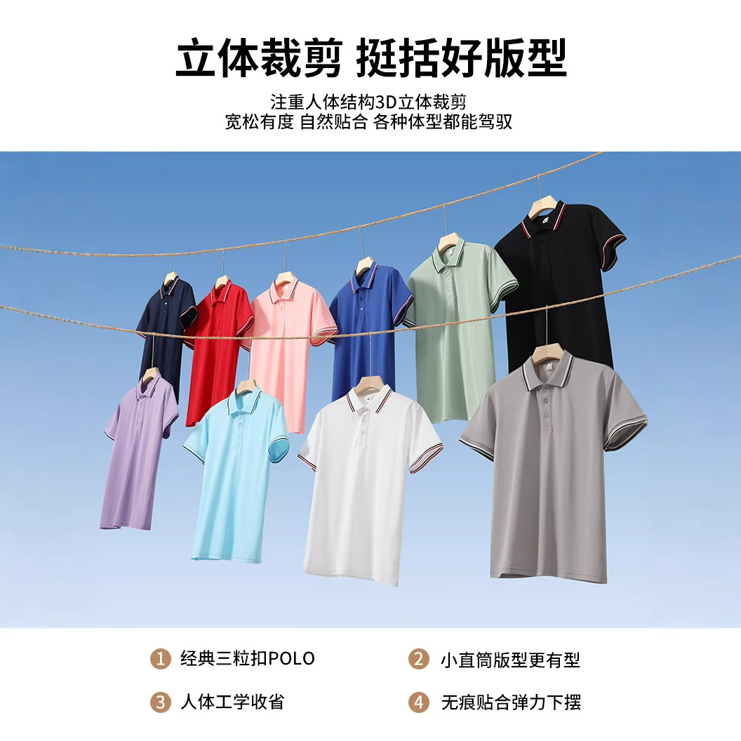 190克冰丝T恤男女同款蓝色Polo衫短袖翻领工作团体服高端工装印字