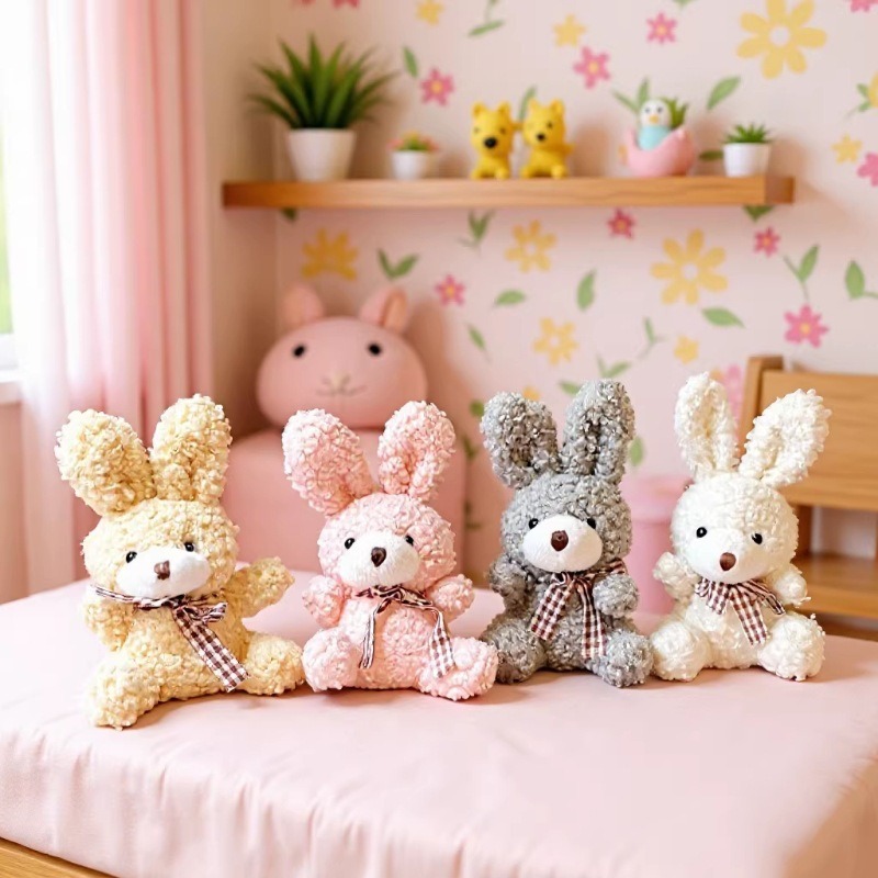 卡通可爱领结坐姿小兔子公仔儿童玩具毛绒挂件背包钥匙扣玩偶批发