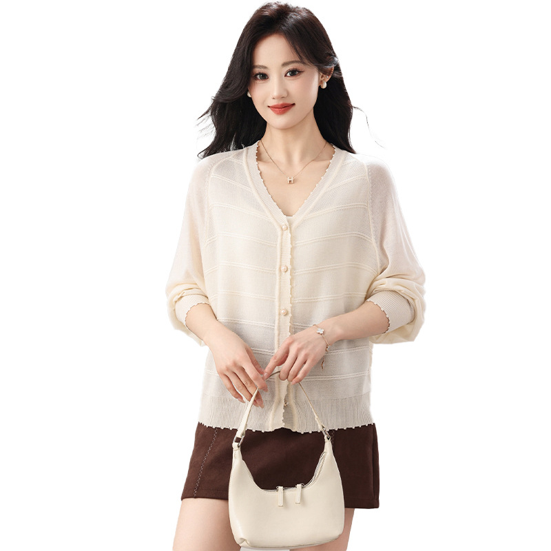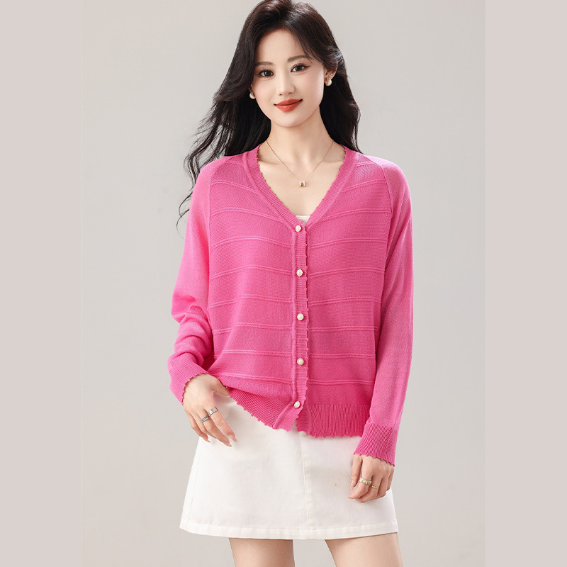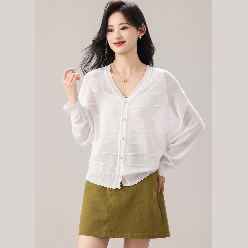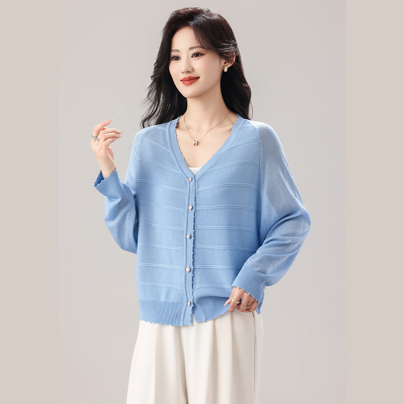 大码女装蝙蝠袖冰丝针织毛衣开衫外套2026春夏季新款单排扣狗牙边